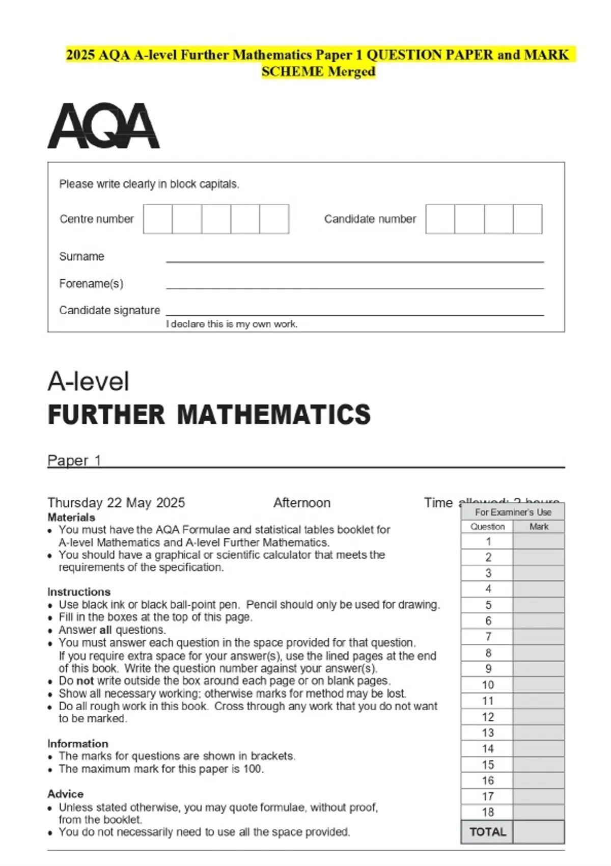 2025 AQA A-level Further Mathematics Exam Bundles June and MARK SCHEME Merged