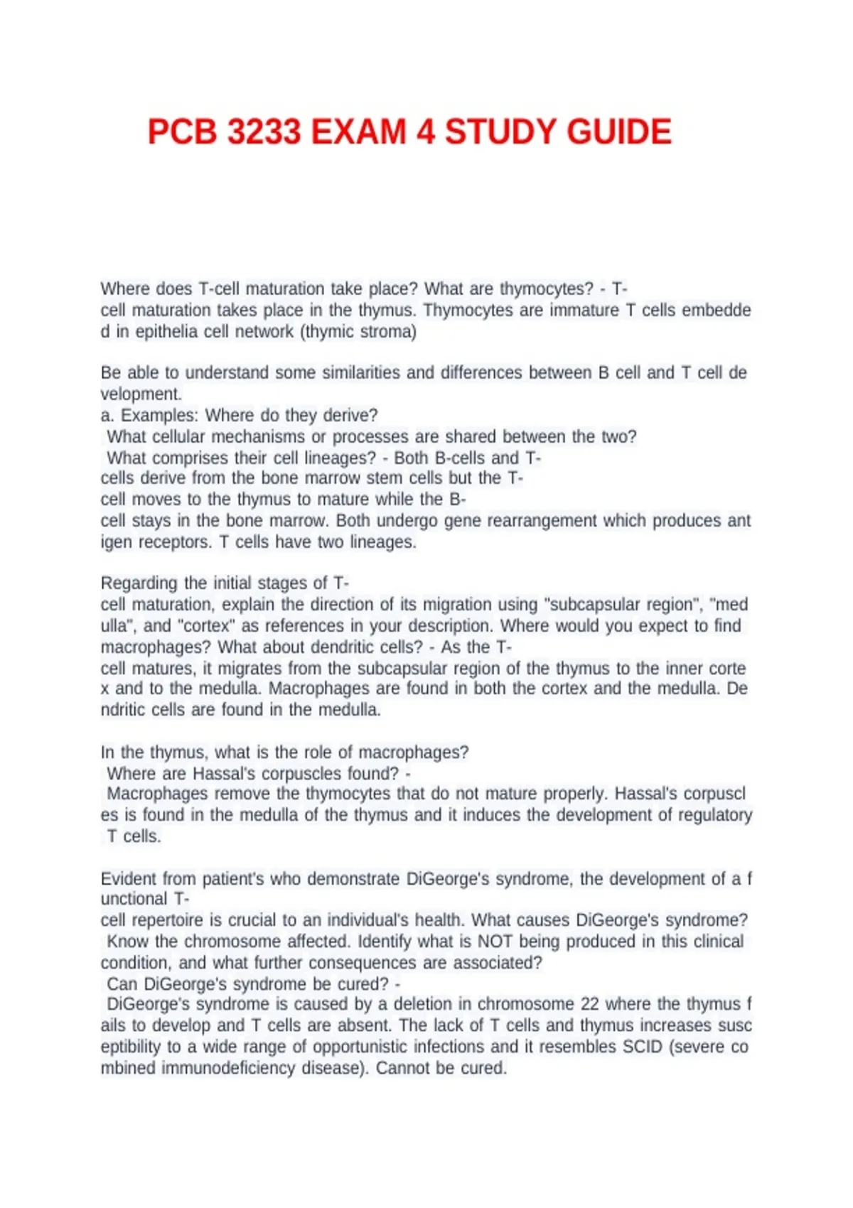 PCB 3233 Immunology Exam 4 questions with correct answers