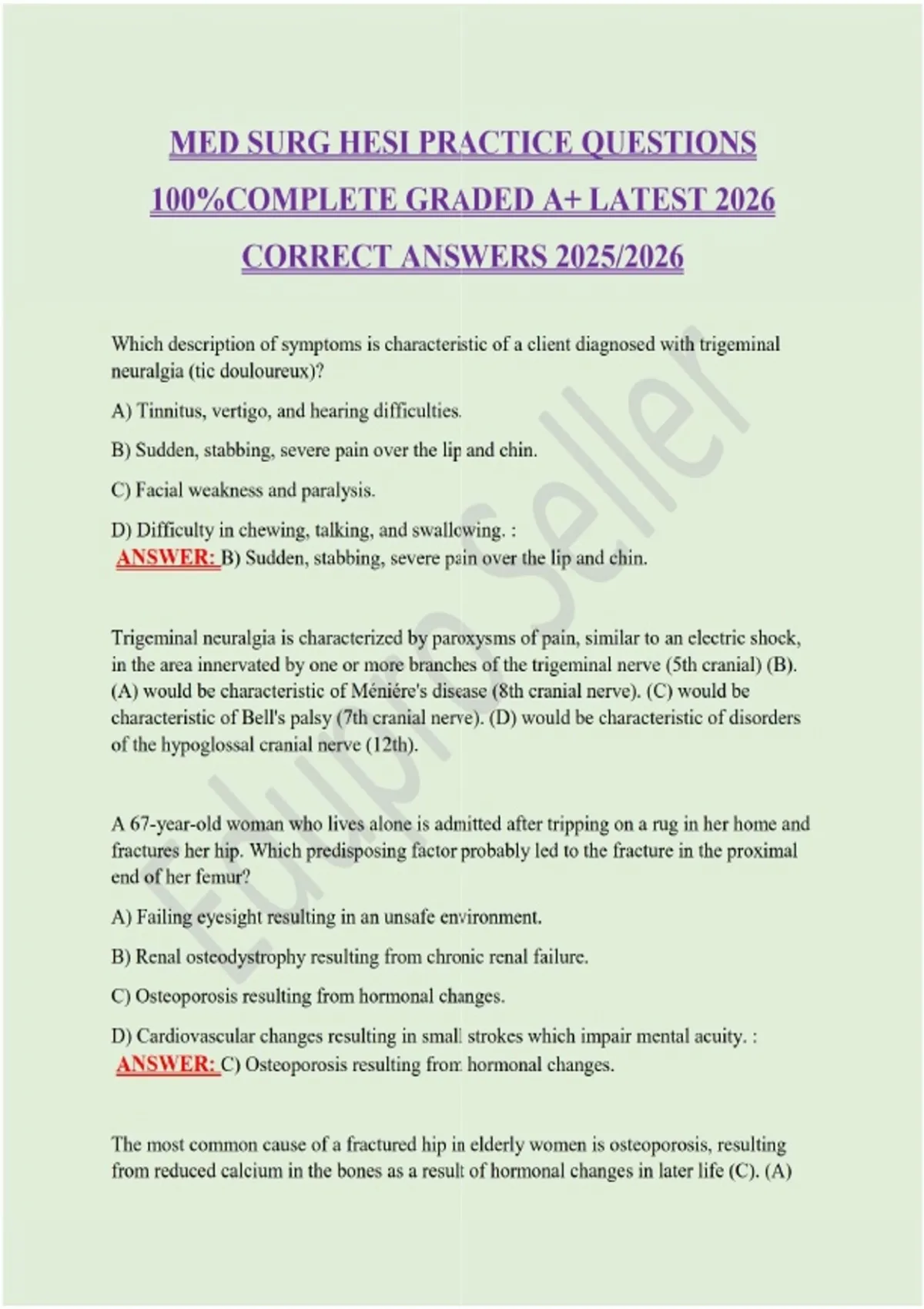 MED SURG HESI PRACTICE QUESTIONS 100%COMPLETE GRADED A+ LATEST 2026 CORRECT ANSWERS 2025/2026