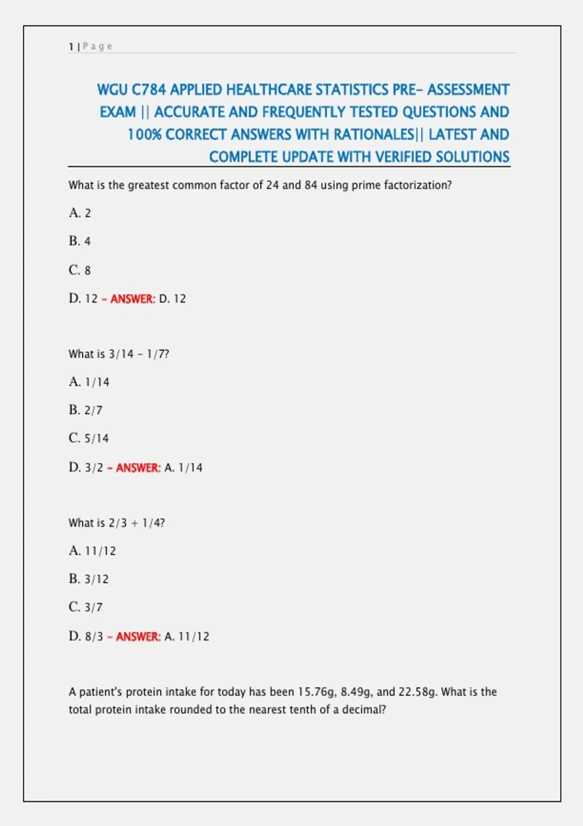 WGU C784 Applied Healthcare Statistics Exam | Package Deal | Graded A+