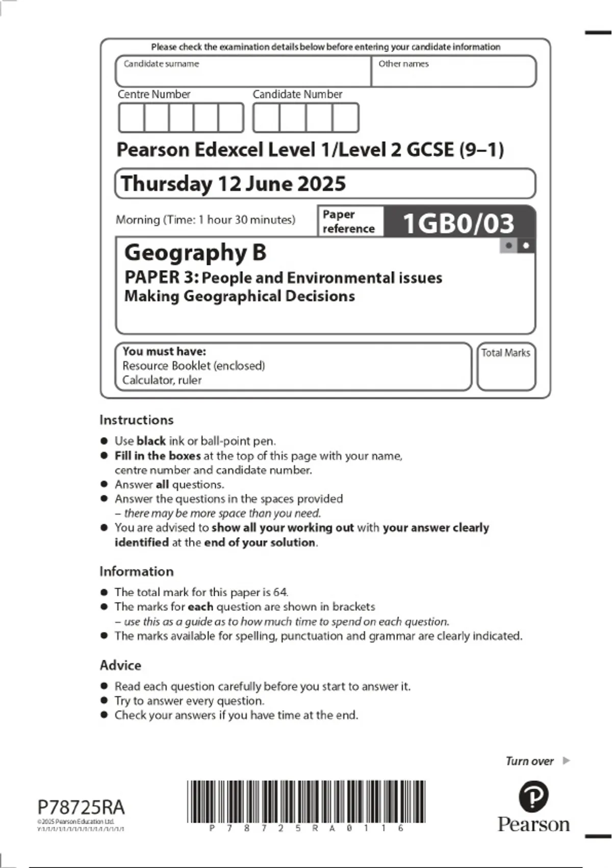 2025 Pearson Edexcel Level 3 GCE Geography Advanced PAPER 3 Combined Question Paper and Marking Scheme 2 Exam (elaborations) 2025 Pearson Edexcel Level 3 GCE Geography Advanced Subsidiary PAPER 2: Dynamic Places Combined Question Paper and Marking Scheme 3 Exam (elaborations) 2025 Pearson Edexcel Level 3 GCE Geography Advanced Subsidiary PAPER 1:
