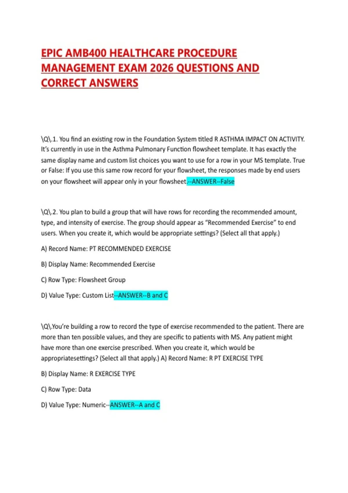 /AMB400 EpicCare Ambulatory Administration Exam complete Questions And Correct Answers verified exam questions | 100% pass 2 Exam (elaborations) AMB400 EpicCare Ambulatory Administration complete Chapter Review Questions With 100% outlined Correct Answers 100% pass| 3 Exam (elaborations) AMB400 EpicCare Ambulatory Administration Exam Questions Wi