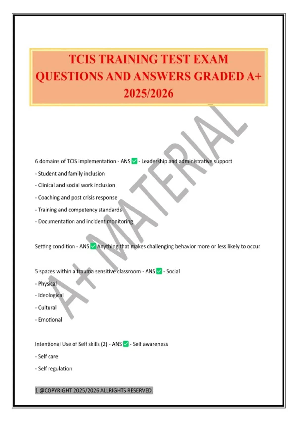 TCIS TRAINING EXAM QUESTIONS AND ANSWERS GRADED A+ 2025/2026