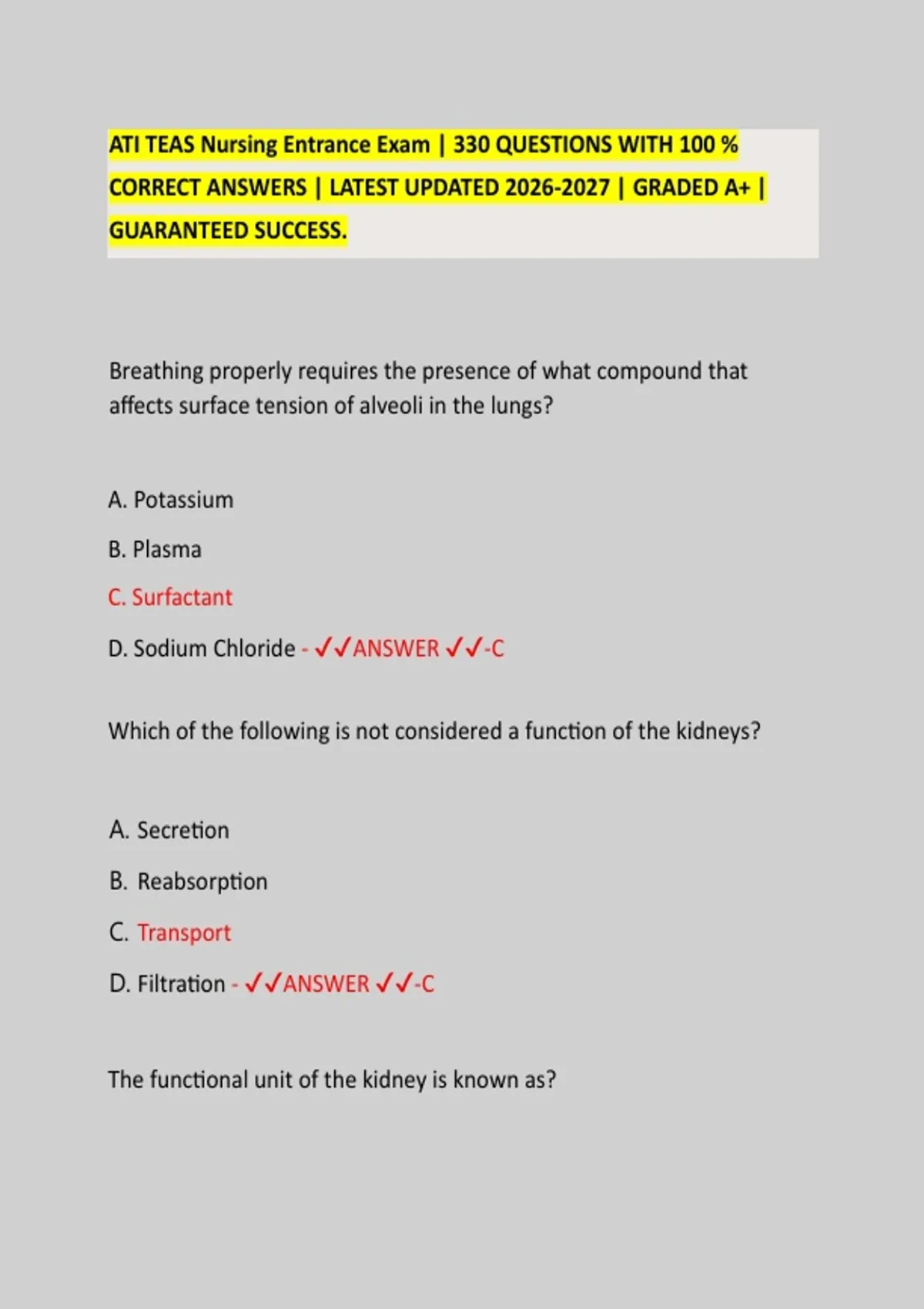 ATI TEAS ENTRANCE EXAM | ACTUAL EXAM QUESTIONS AND CORRECT ANSWERS WITH RATIONALES & ATI TEAS Nursing Entrance Exam | 330 QUESTIONS WITH 100 % CORRECT ANSWERS | LATEST UPDATED | GRADED A+ | GUARANTEED SUCCESS.