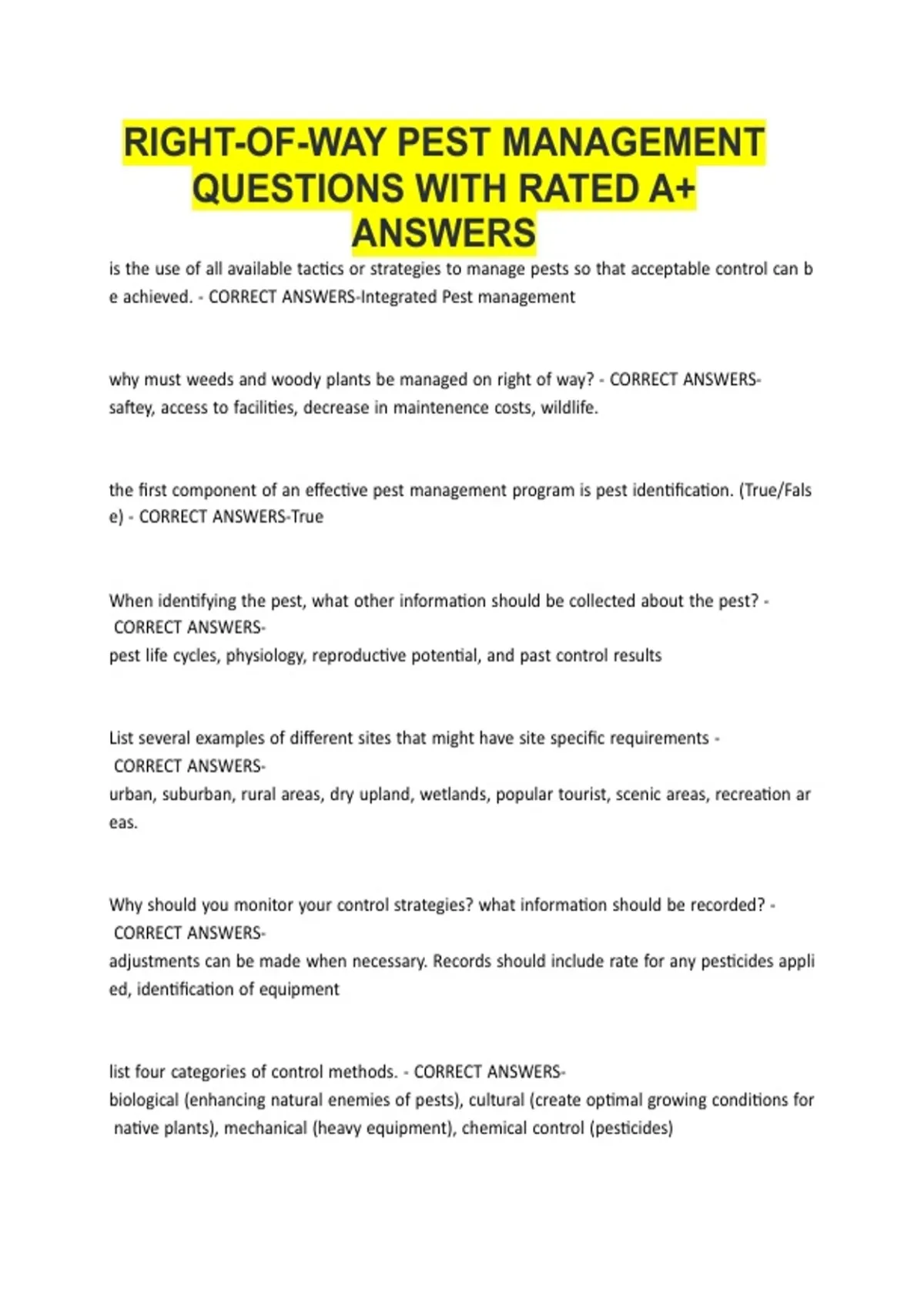 MI Right-of-Way Pest Management EXAM QUESTIONS WITH CORRECT ANSWERS RATED A+