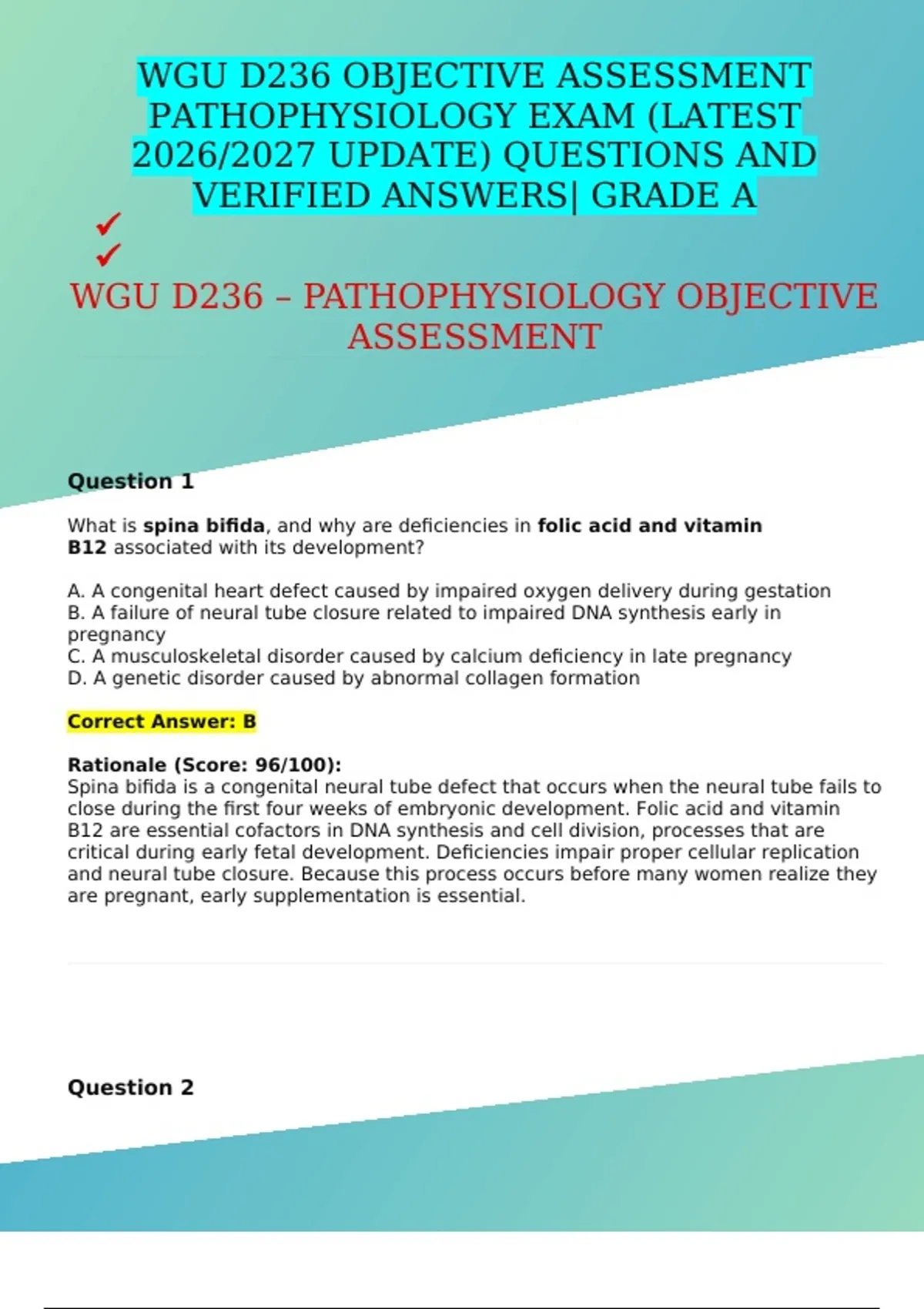 PACKAGE DEAL FOR WGU D236 OBJECTIVE ASSESSMENT PATHOPHYSIOLOGY EXAM (LATEST 2026/2027 UPDATE) QUESTIONS AND VERIFIED ANSWERS| GRADE A