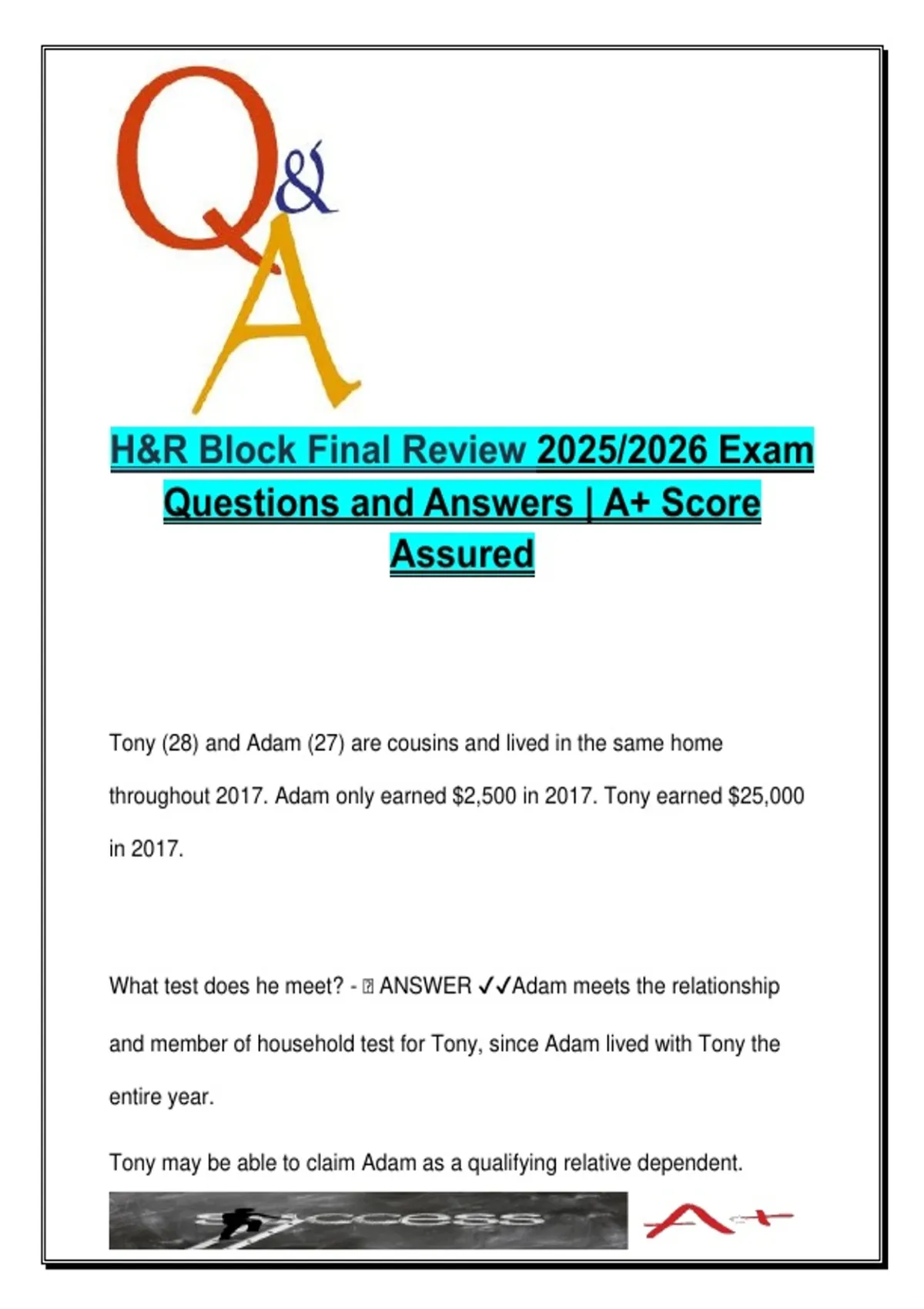 H&R Block Final Review | 2025/2026 | Complete Exam Guide with A+ Verified Answers