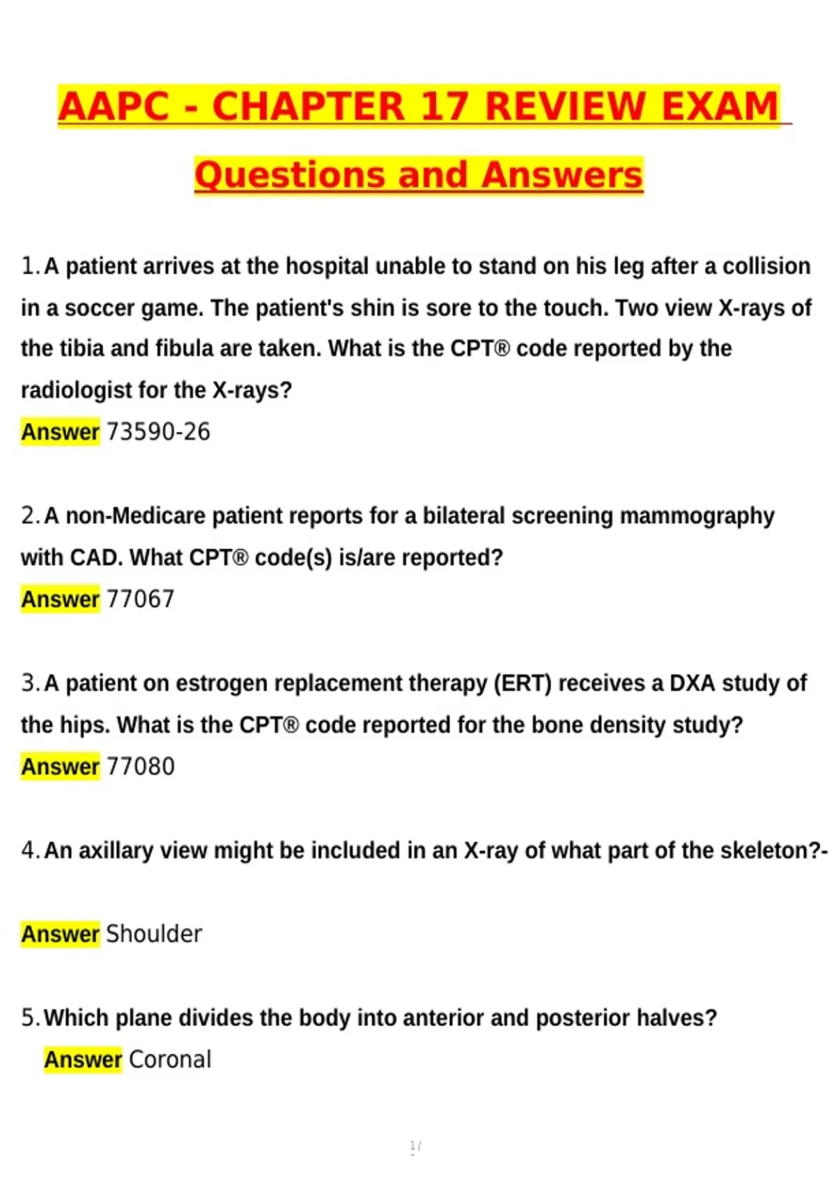 AAPC CPC ACTUAL BUNDLED EXAMS (Latest 2026 / 2027 Update) Questions and Verified Answers | 100% Correct | Grade A+ AAPC CPC Exam Practice Questions & Chapter Reviews | Chapters 1, 12, 17, 19, 20 | CPC Coding Guidelines, Compliance & Regulatory | 150 Practice Questions | Official CPC Study Guide Notes | 2026 Updated | INSTANT PDF DOWNLOAD