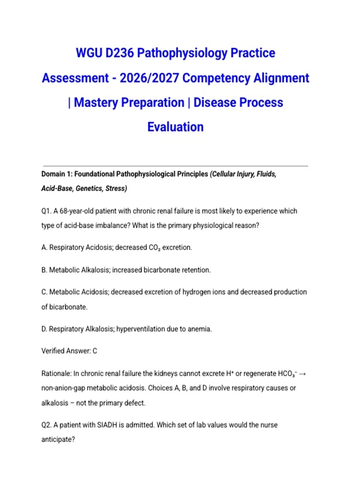 Master EVERY WGU D236 Pathophysiology assessment with this COMPLETE STUDY PACK featuring Objective Assessment, Pre-Assessment Exams with Latest 2026/2027 Updates. This ultimate package includes complete guides with questions and verified answers guaranteed 100% correct. Covers disease processes, system disorders, cellular mechanisms, and clinical c