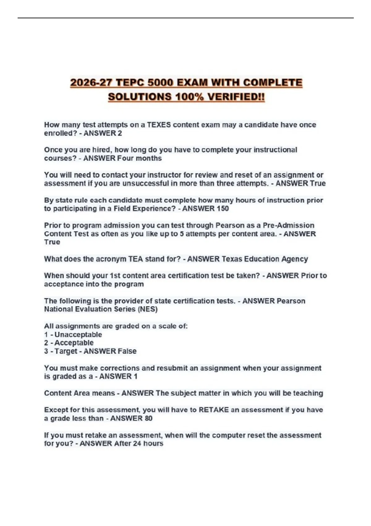 2026-27 TEPC 5000 EXAM WITH COMPLETE SOLUTIONS 100% VERIFIED!!