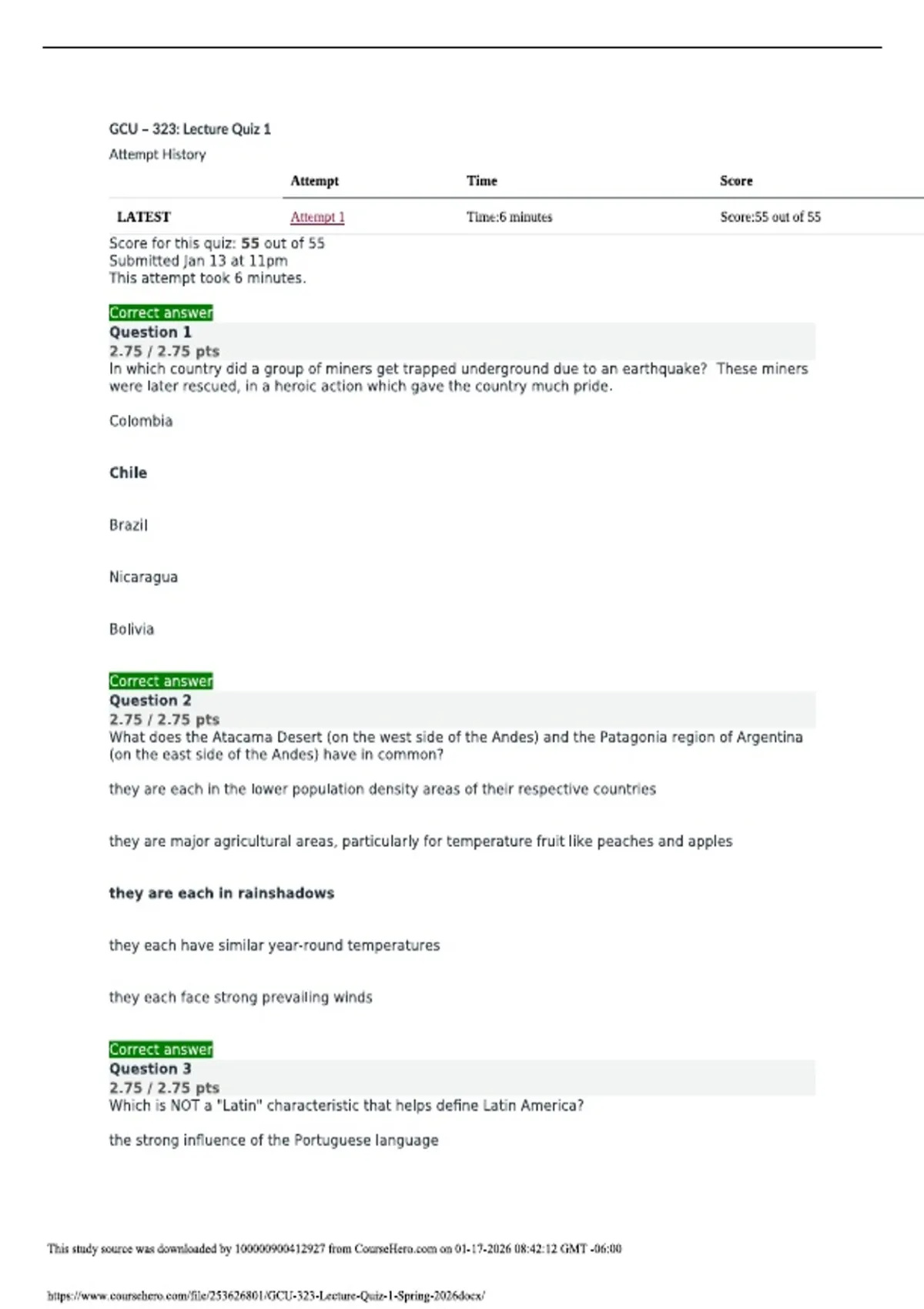 Exam (elaborations) GCU 323 - Lecture Quiz 1 (Spring 2026)| Questions and answers | Updated RATED A+ | NEW EDITION 2 Exam (elaborations) GCU 323 - Map Quiz 1 (Spring 2026)| With complete solution | RATED A+ | 100% CORRECT 3 Exam (elaborations) GCU 323 Reading Quiz 1 (Spring 2026)| With complete solution | RATED A+ | NEW EDITION