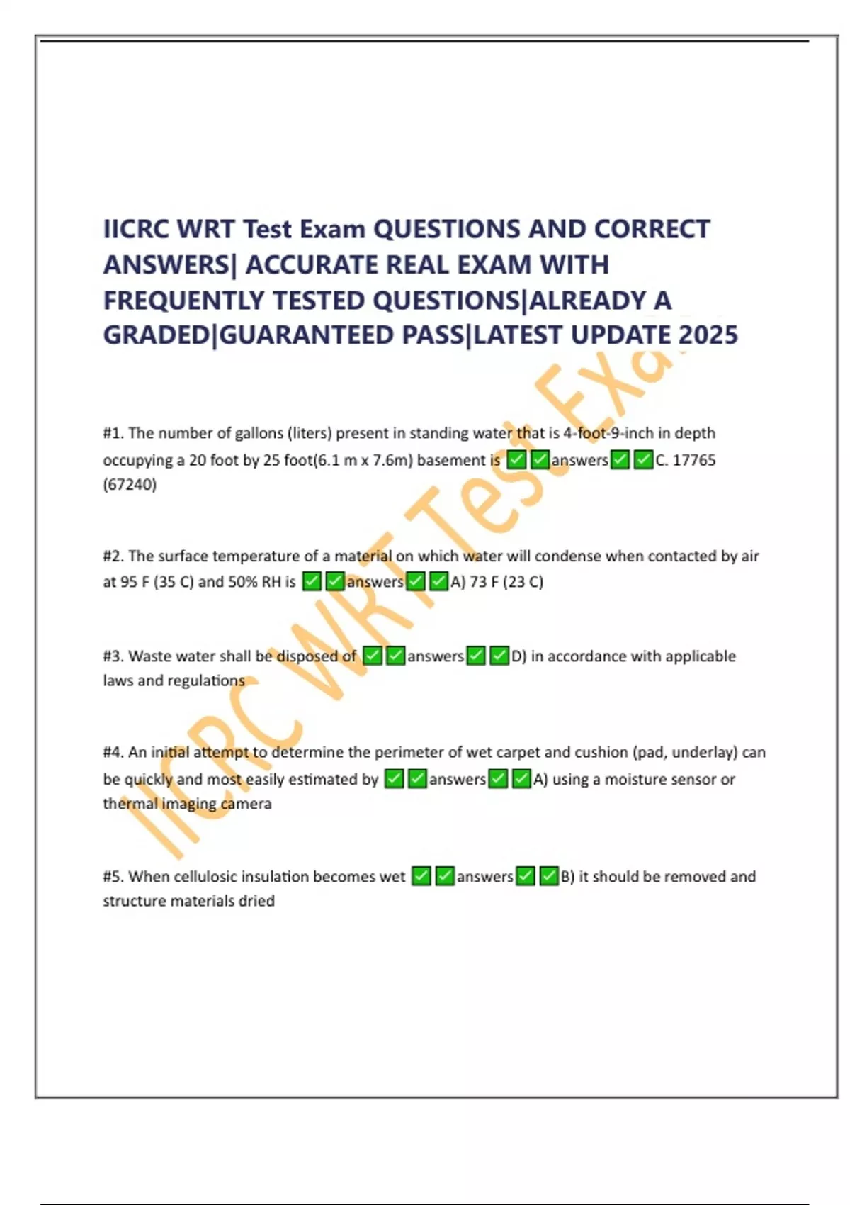 IICRC WRT Test Exam QUESTIONS AND CORRECT ANSWERS| ACCURATE REAL EXAM WITH FREQUENTLY TESTED QUESTIONS|ALREADY A GRADED|GUARANTEED PASS|LATEST UPDATE 2025