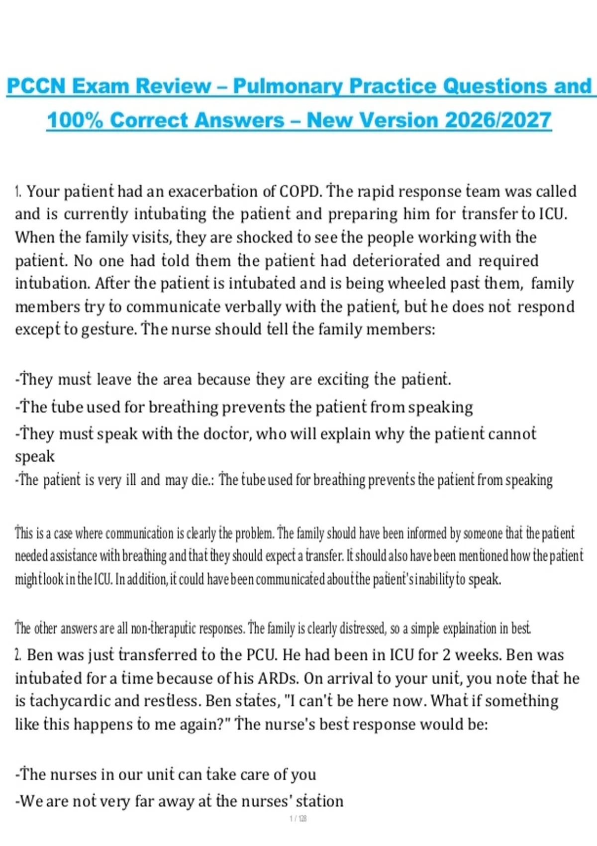 PCCN Exam Review – 2026/2027 | Questions with Revised Answers (Graded A+) PCCN Exam – 2026/2027 | Actual Complete Questions and Verified Answers (Already Graded A+) PCCN Practice Exam #1 – 2026/2027 | Questions with Correct Answers (Rated 100% Correct) PCCN Exam Review – Pulmonary, 2026/2027 | Practice Questions with 100% Correct Answers (New Versi
