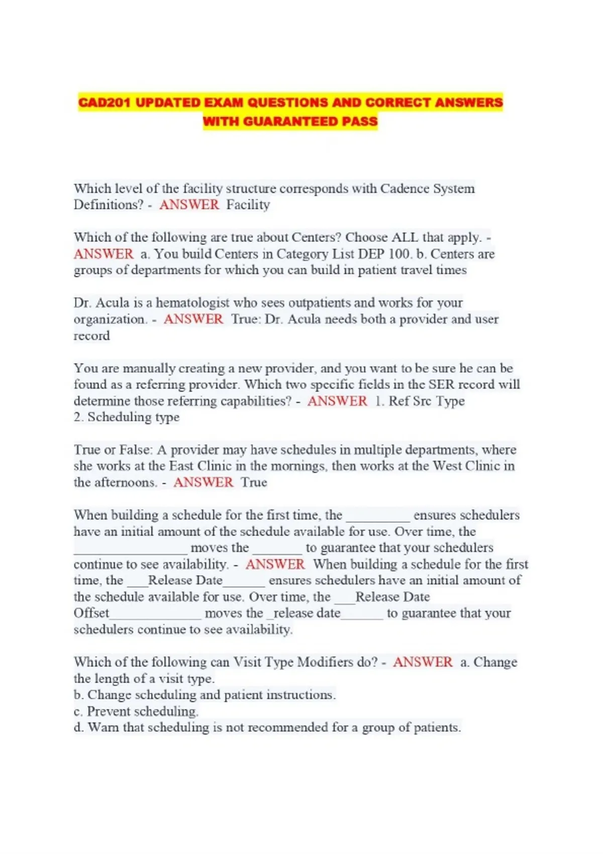 CAD201 UPDATED EXAM QUESTIONS AND CORRECT ANSWERS WITH GUARANTEED PASS
