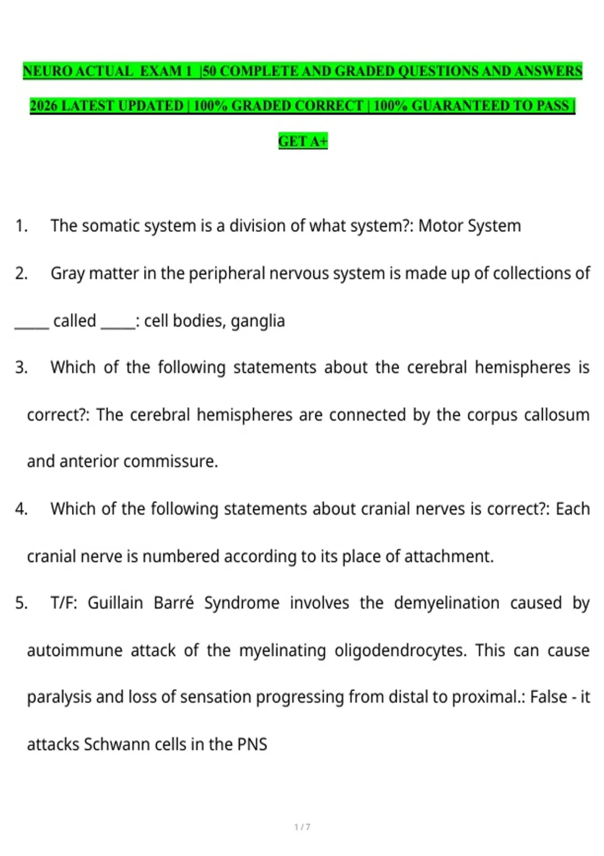 PACKAGE DEAL FOR NEURO ACTUAL EXAM 1 | COMPLETE AND GRADED QUESTIONS AND ANSWERS 2026 LATEST UPDATED | 100% GRADED CORRECT | 100% GUARANTEED TO PASS | GET A+| 5 ITEMS