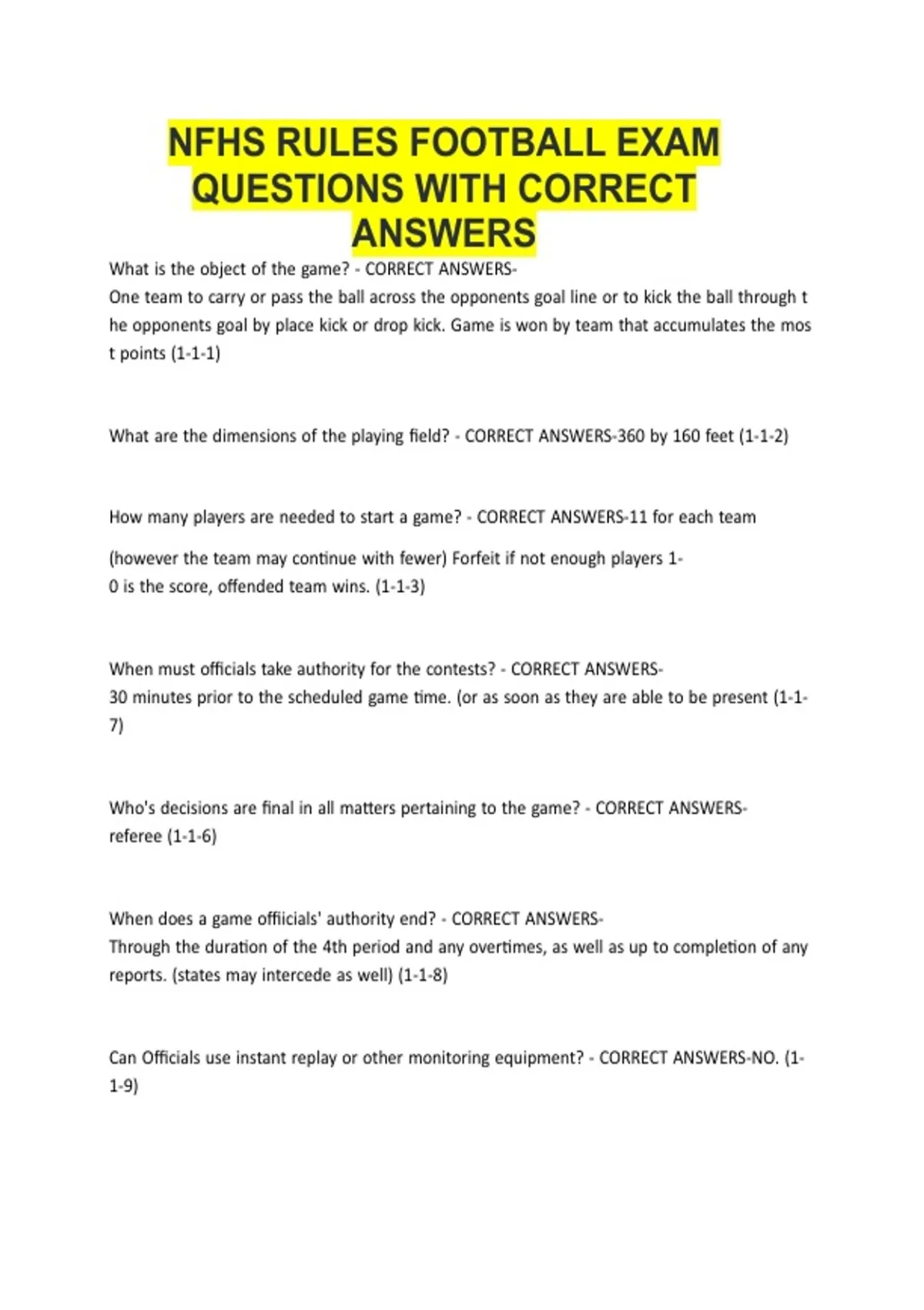 NFHS Soccer Rules Quiz QUESTIONS & ANSWERS ( A+ GRADED 100% VERIFIED)