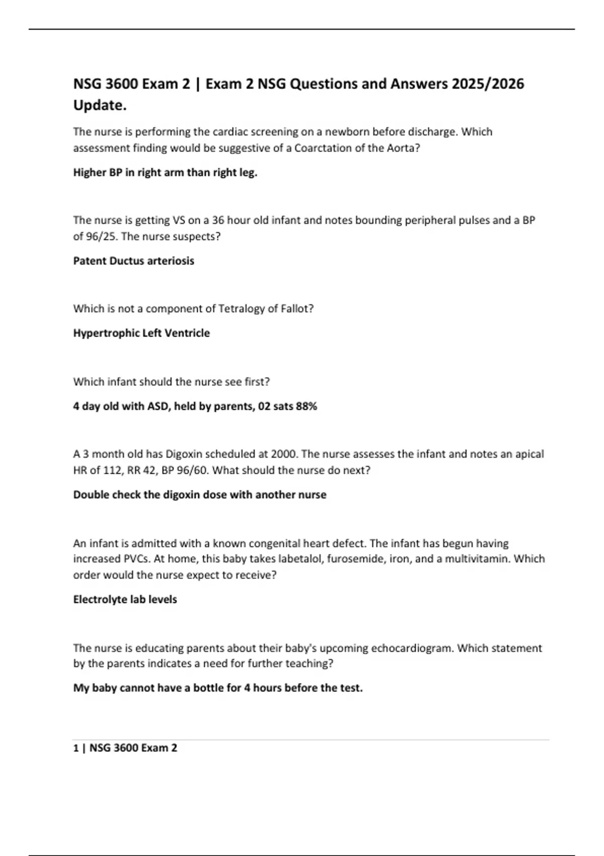 NSG 3600 Exam 1, 2, 3 & 4 Questions and Answers Latest 2026 Galen Package Deal