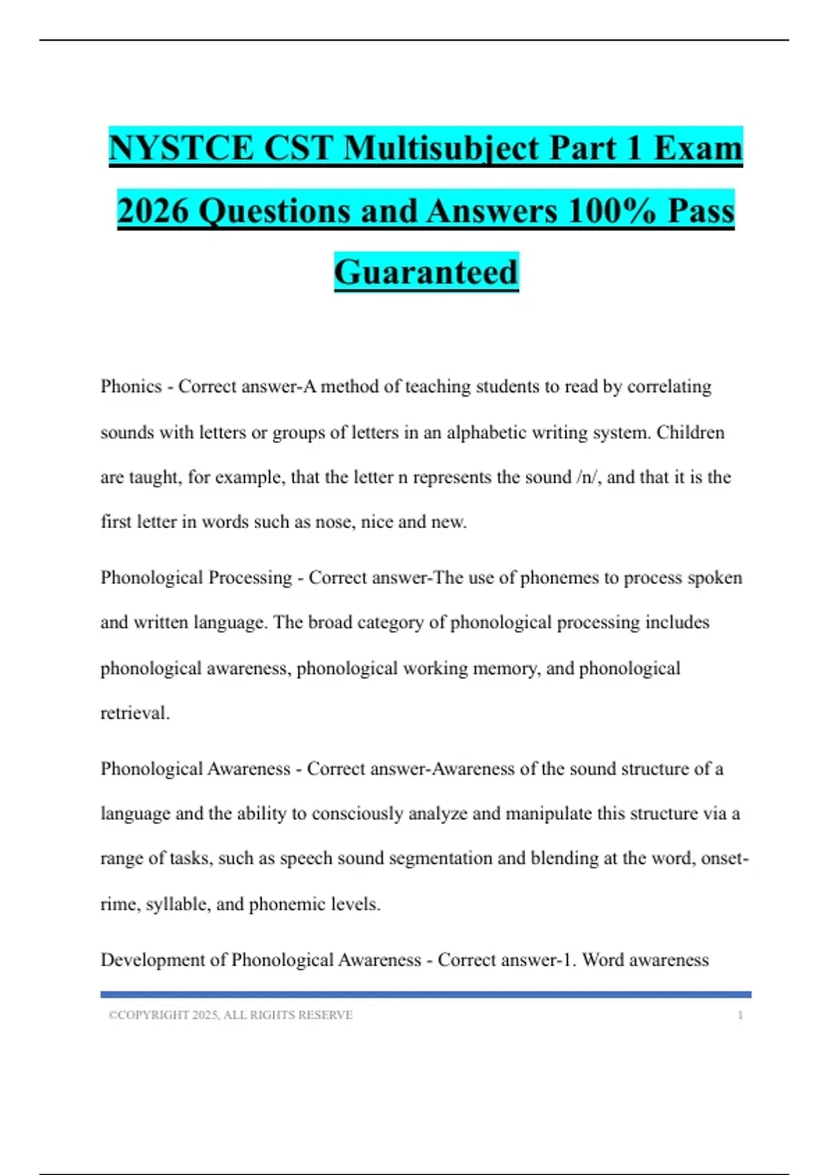 NYSTCE CST Multisubject Part 1 Exam 2026 Questions and Answers 100% Pass Guaranteed