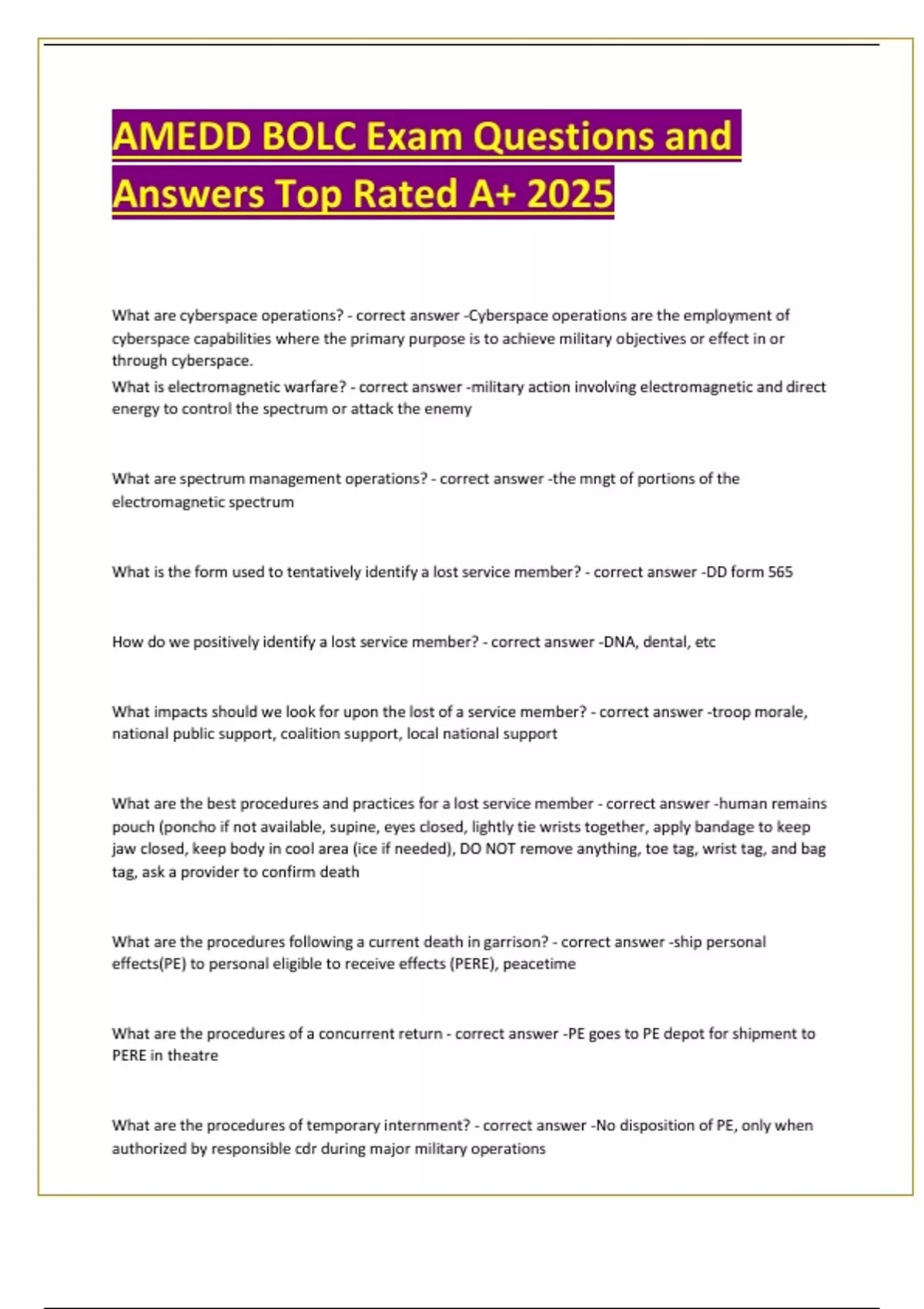 AMEDD BOLC Final Exam Study Guide Questions with 100- Correct Answers Latest Version Top Rated .