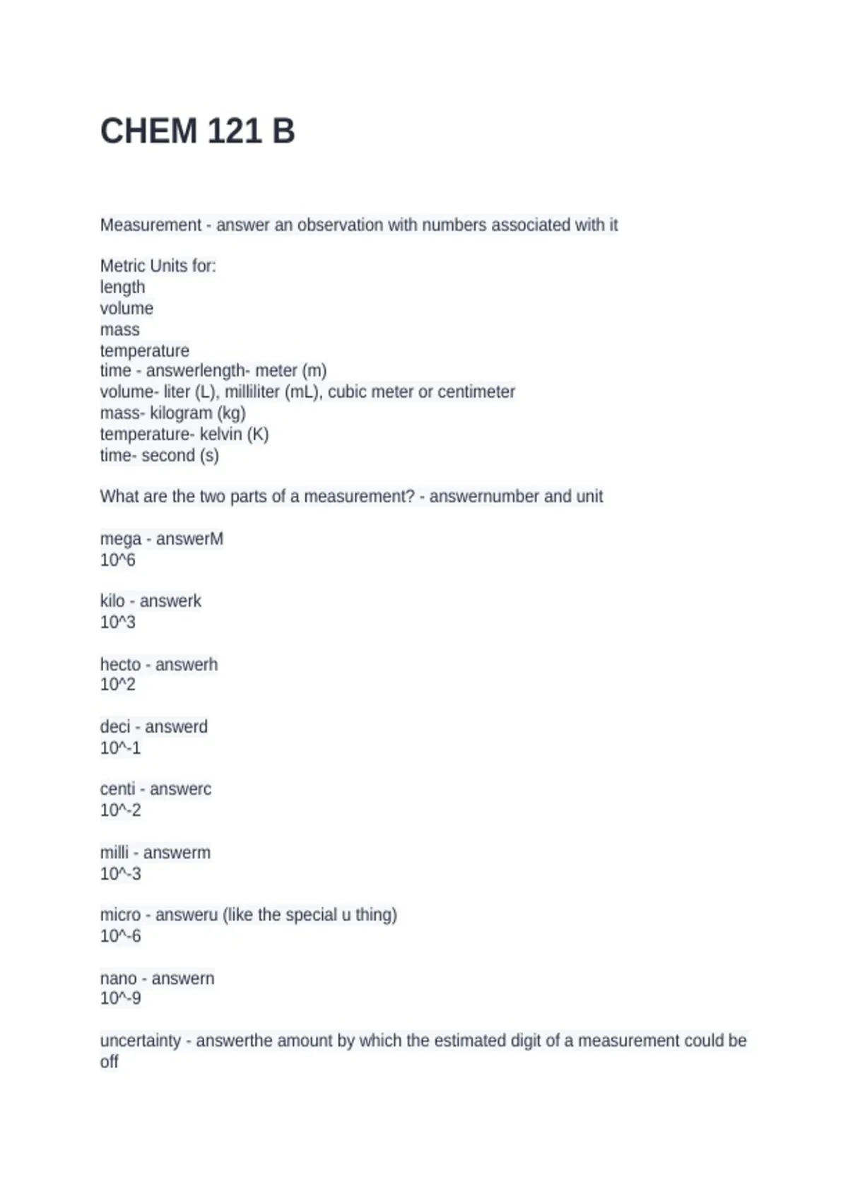 Exam (elaborations) Chemistry 121-Chapter 1, 2, 3 (Test 1). Questions and Answers 2026 Exam (elaborations) Chemistry 121 Exam 1 Guide Questions and Answers Exam (elaborations) Chemistry 121 Chapters 1-3 Cards Questions and Answers Exam (elaborations) CHEM 121 QUESTIONS AND ANSWERS Exam (elaborations) Chem 121. Chapter 1. Questions and Answ