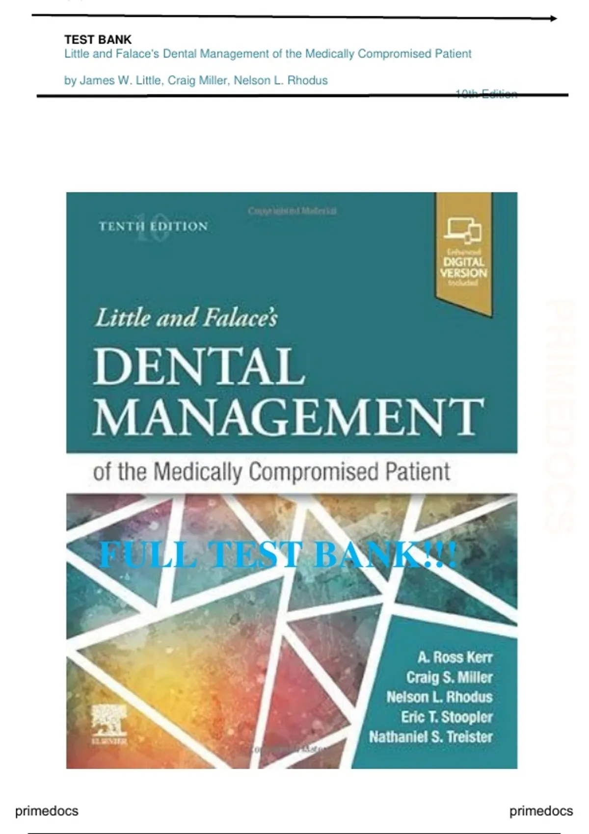 This bundle includes complete test banks for Little & Falace’s Dental Management of the Medically Compromised Patient, 9th and 10th Editions, with chapter-by-chapter questions and verified answers, ideal for exam prep, practice, and revision across both editions.
