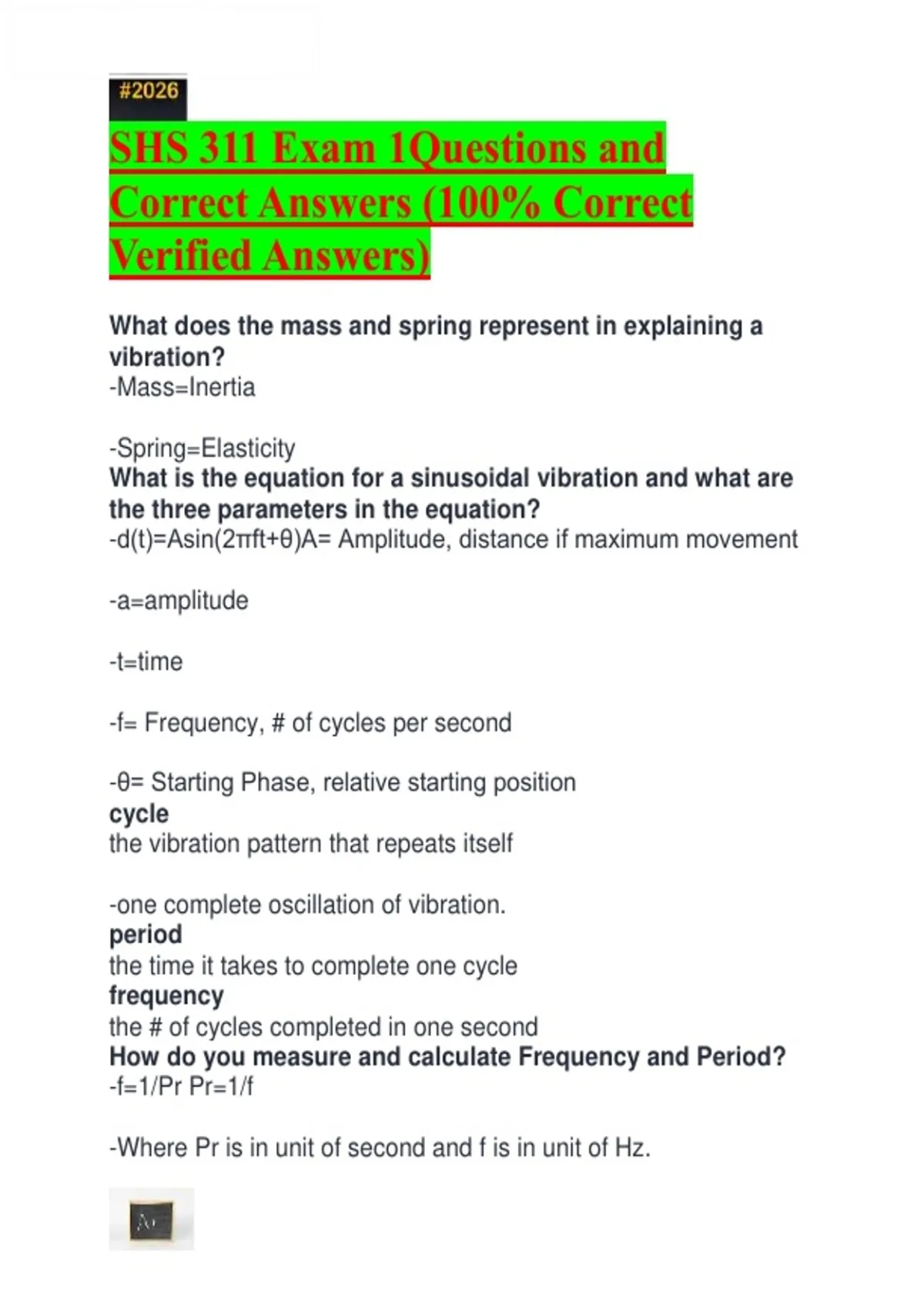 SHS 311 Exam 1Questions and Correct Answers (100% Correct Verified Answers)