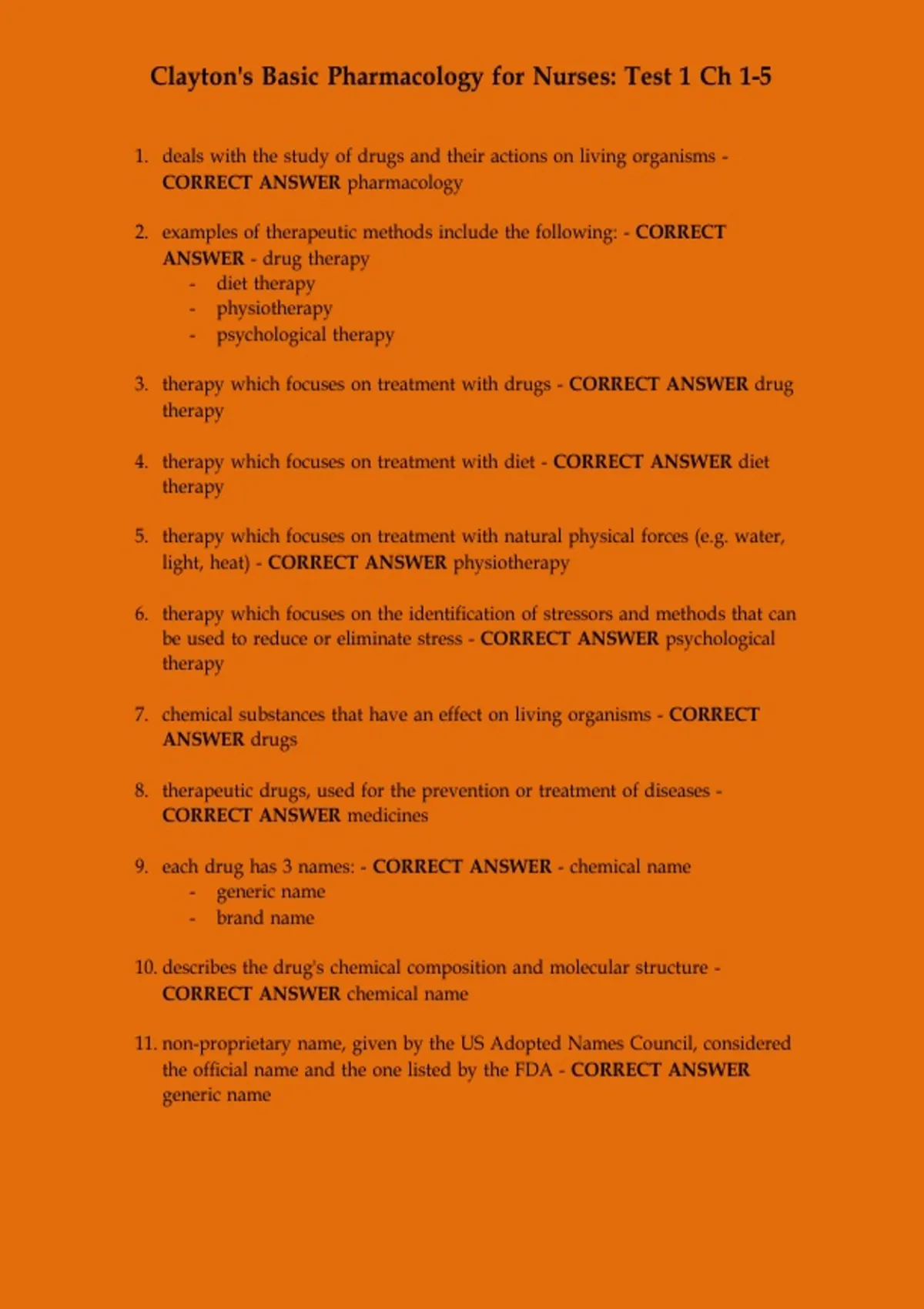 Clayton’s Basic Pharmacology for Nurses Chapter 1 to 19 Questions and Answers