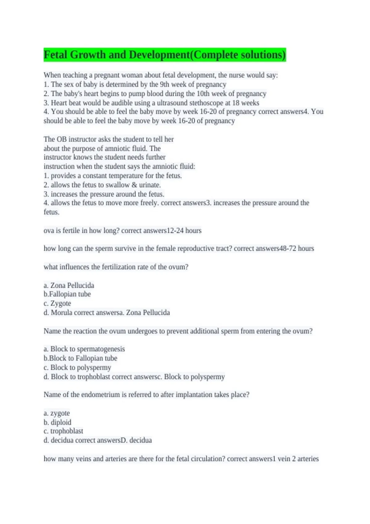 Fetal Growth and Development(Complete solutions)