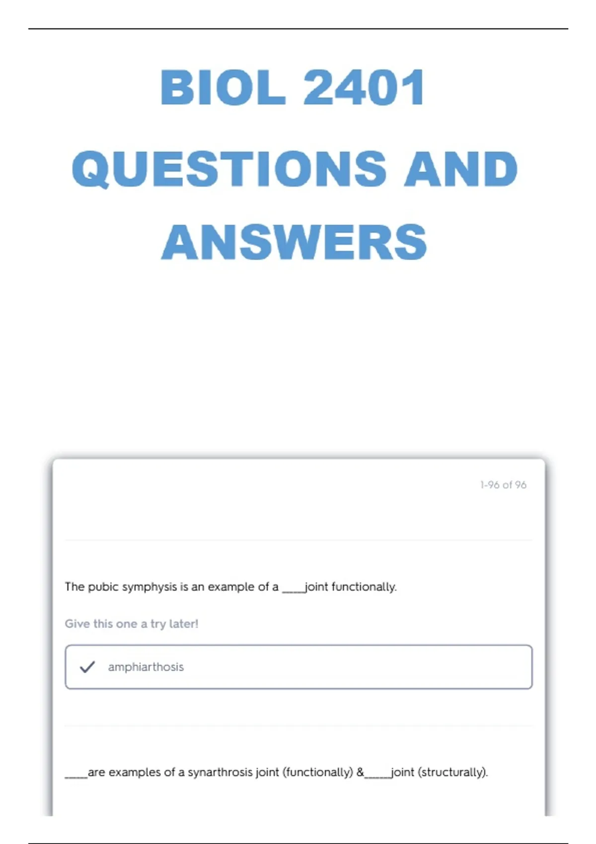 2026 Complete bundled pack of BIOL 2401 Actual Exams| Questions Set with Verified Answers| 100% Accurate!!!
