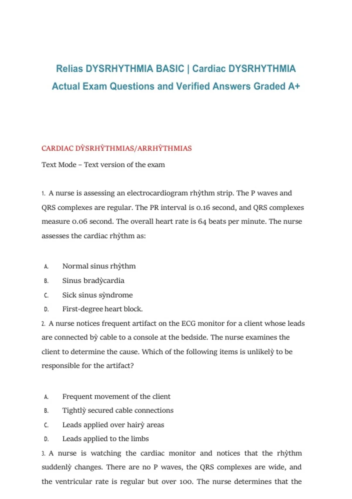 Package deal for Relias Dysrhythmia Basic – Actual Exam Elaboration Questions and Answers | Graded A+ 2026/2027