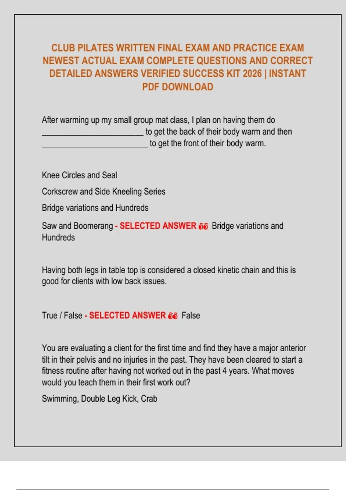 CLUB PILATES Exams | QUESTIONS & ANSWERS | Complete Updated Bundle