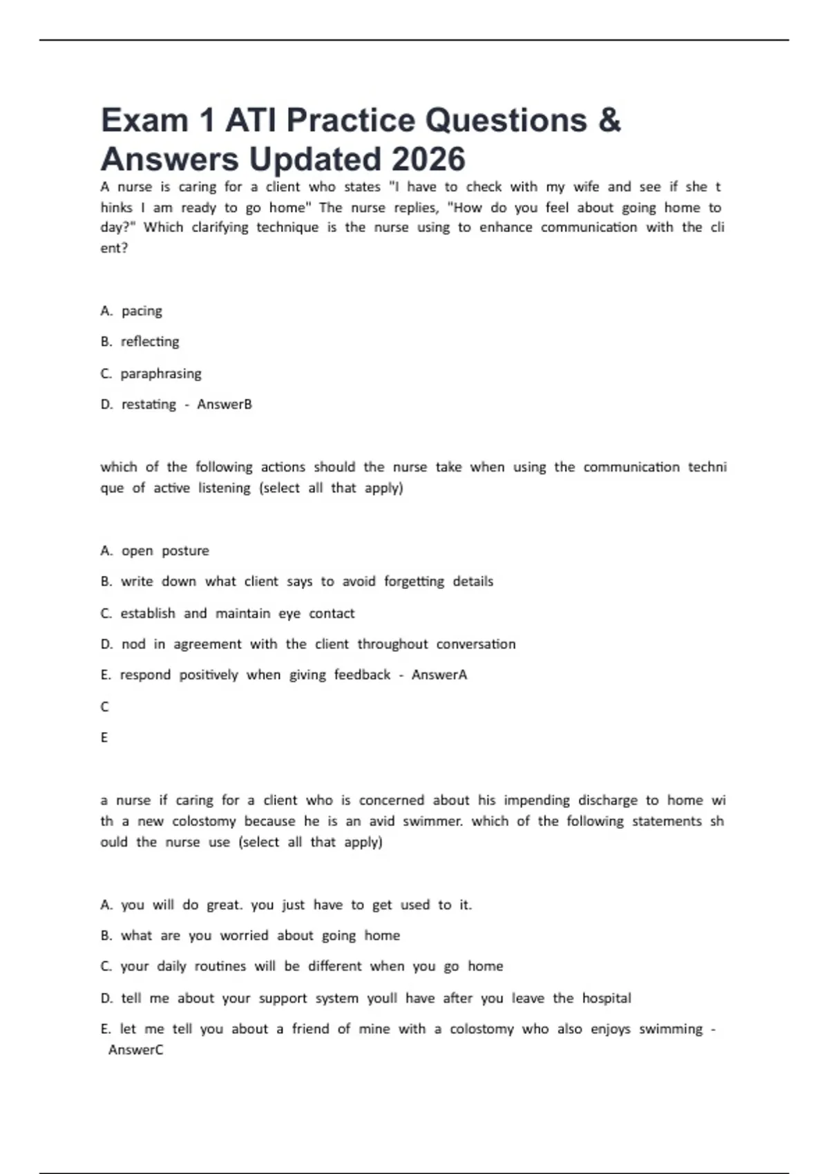 Exam 1 ATI Practice Questions & Answers Updated 2026