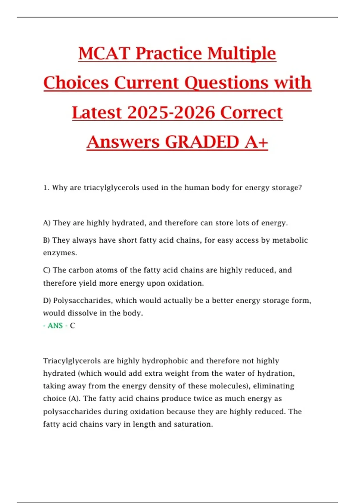 MCAT Practice Questions with Verified Latest Correct Answers and Rationales GRADED A+