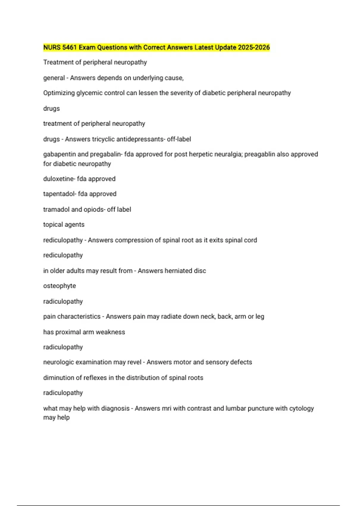 NURS 5461 BUNDLED QUESTIONS WITH CORRECT ANSWERS LATEST UPDATE 2026/2027