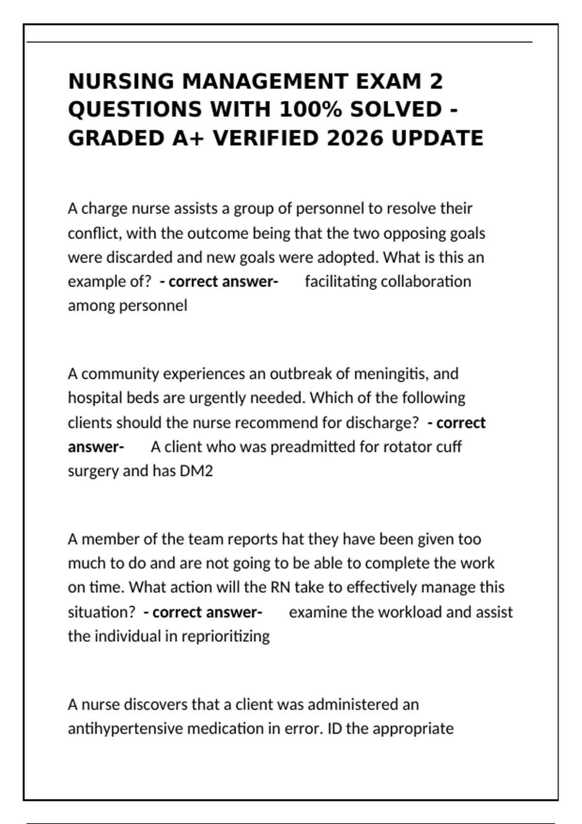 Nursing Management Exam Package Deal 2026 | Practice Exams, Study Guides & Verified Answers
