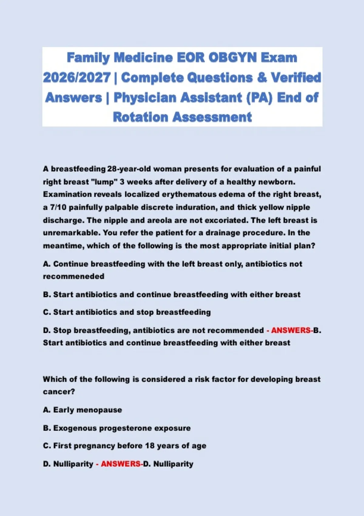 This Family Medicine Study Set Exam is fully updated for the 2026–2027 academic year and provides a comprehensive review of essential concepts in primary and family healthcare. The material covers key topics commonly tested in family medicine exams, including preventive care, chronic disease management, acute conditions, patient assessment, and evi