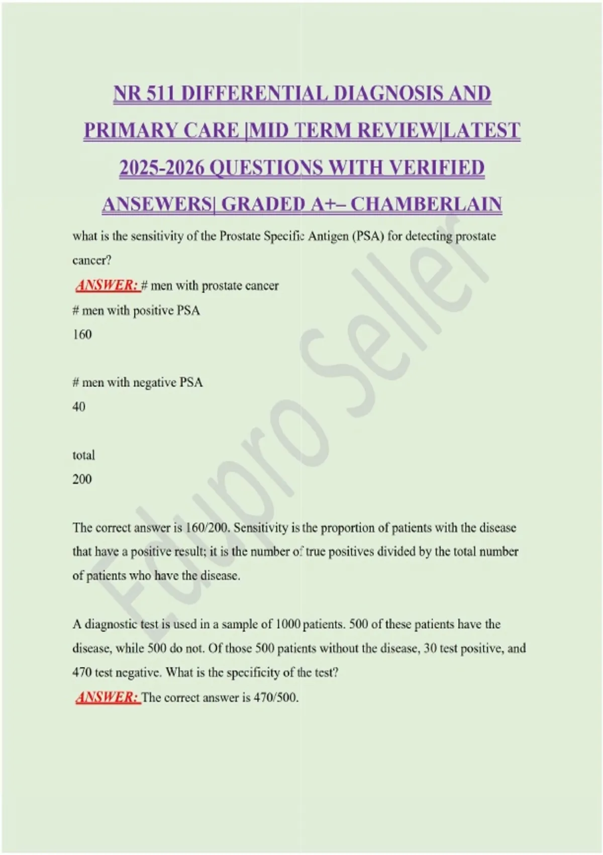 NR 511 UPDATED STUDY BUNLE PACKAGE FOR FINAL AND MIDTERM EXAM QUESTIONS |DIFFERENTIAL DIAGNOSIS AND PRIMARY CARE | QUESTIONS WITH VERIFIED ANSWERS| GRADED A+– CHAMBERLAIN