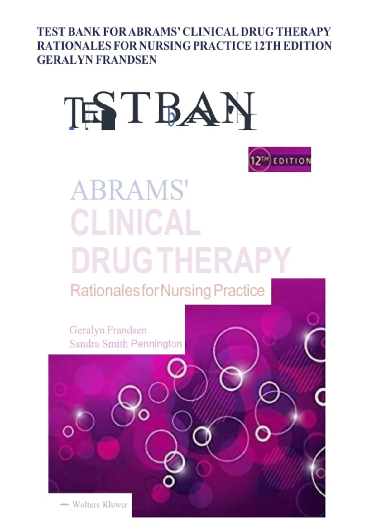 Master clinical excellence with this high-yield 5-book bundle. Includes comprehensive test banks for Purves’ Neuroscience 6e, Meyer’s Psychopharmacology 3e, Gardenhire’s Respiratory Care 9e, Jarvis’ Health Assessment 8e, and Abrams’ Clinical Drug Therapy 12e. Perfect for nursing and medical students seeking expert-verified questions, rationales.