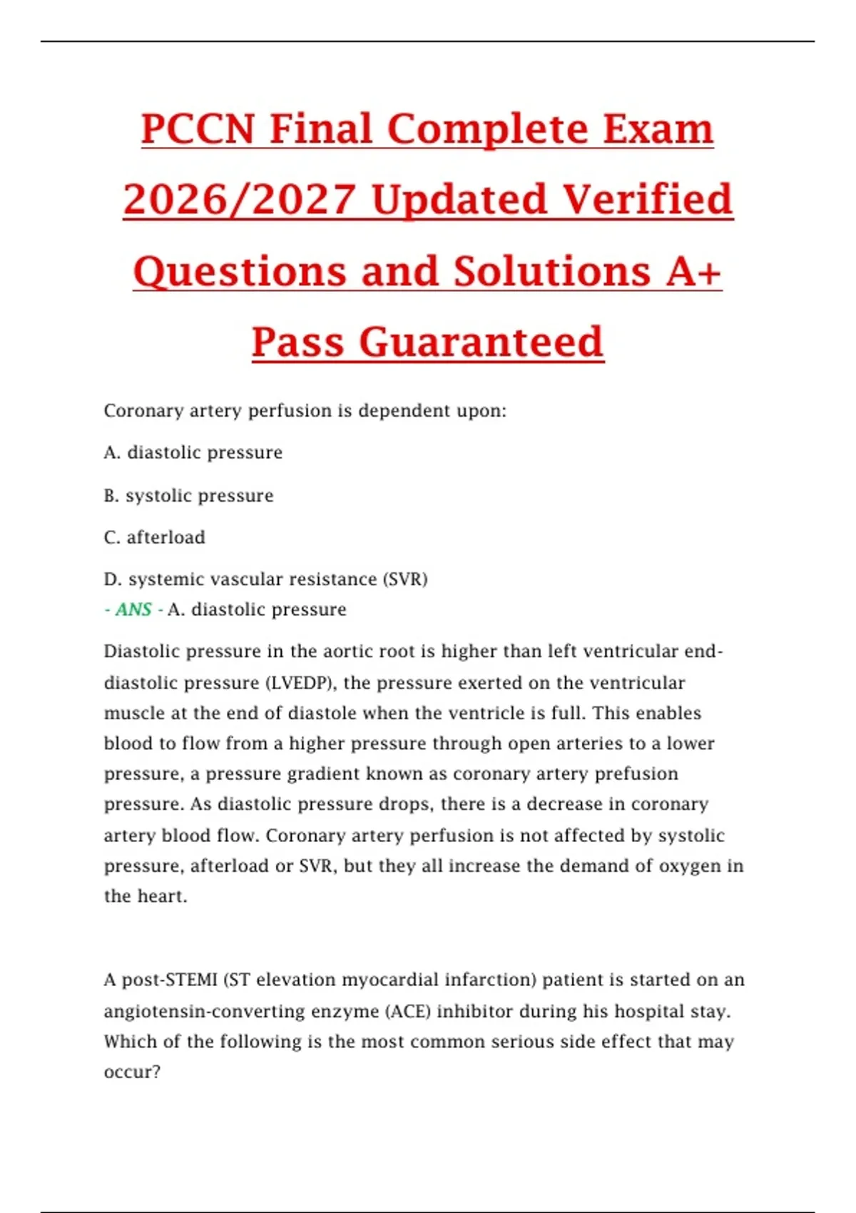 PCCN Prep Practice Exam 2026/2027 Updated Verified Questions and Solutions A+ Pass Guaranteed PCCN Prep Practice Exam 2026/2027 Updated Verified Questions and Solutions A+ Pass Guaranteed PCCN Prep Practice Exam 2026/2027 Updated Verified Questions and Solutions A+ Pass Guaranteed PCCN Prep Practice Exam 2026/2027 Updated Verified Questions and Sol