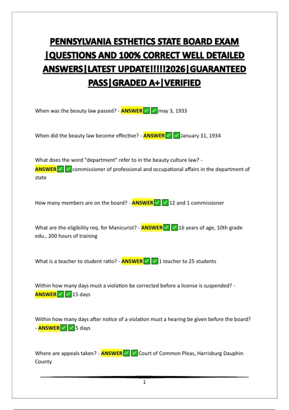 PENNSYLVANIA ESTHETICS STATE BOARD EXAM |QUESTIONS AND 100% CORRECT WELL DETAILED ANSWERS|LATEST UPDATE!!!!!2026|GUARANTEED PASS|GRADED A+|VERIFIED