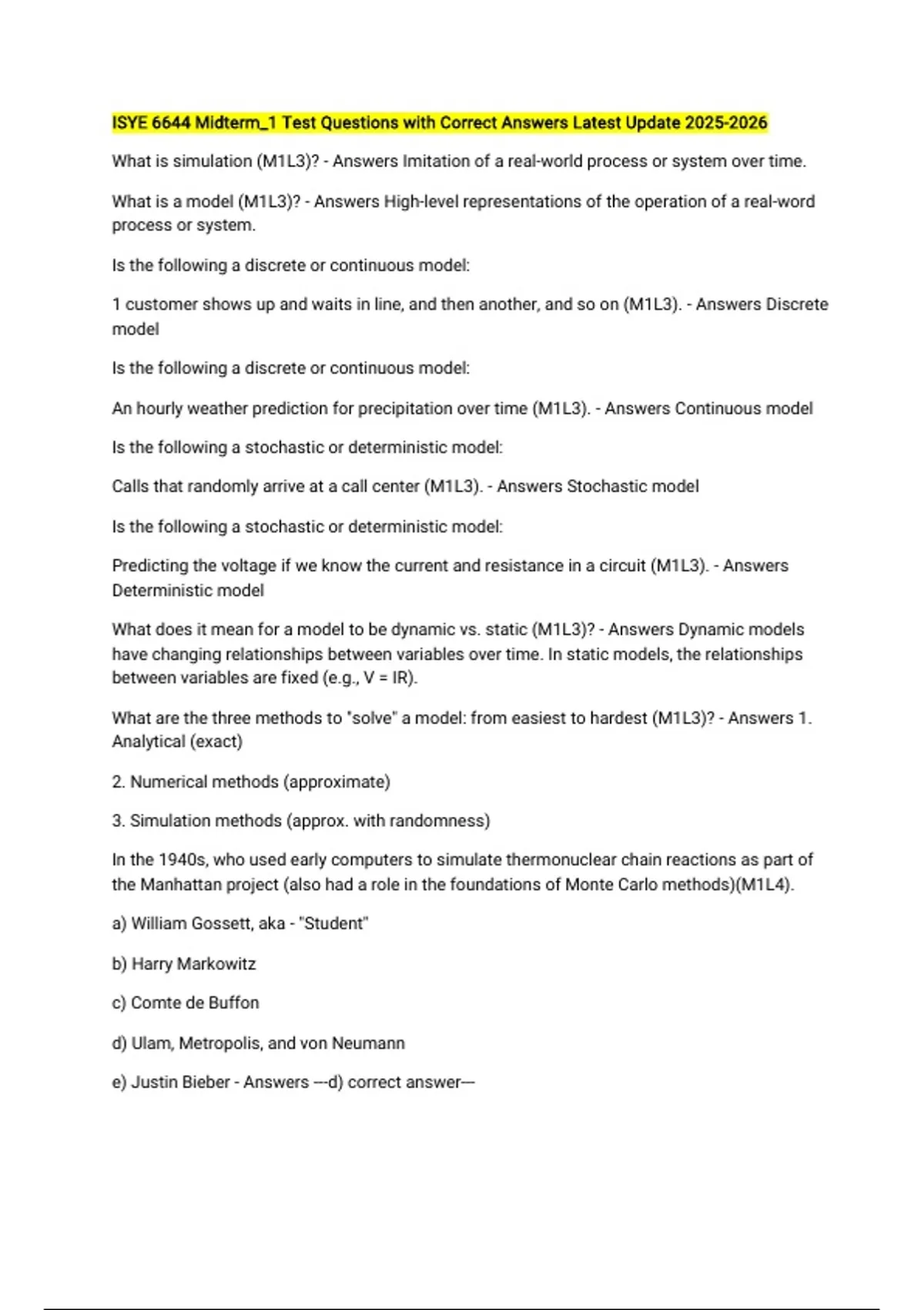 ISYE 6644 BUNDLED QUESTIONS WITH CORRECT ANSWERS LATEST UPDATE 2026