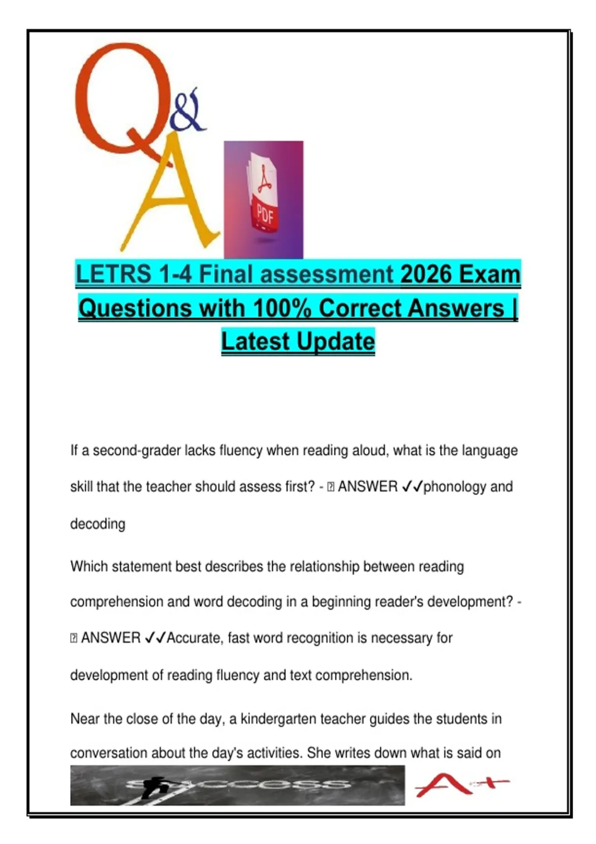 LETRS 1-4 EXAM COMPLETE PACKAGE DEAL