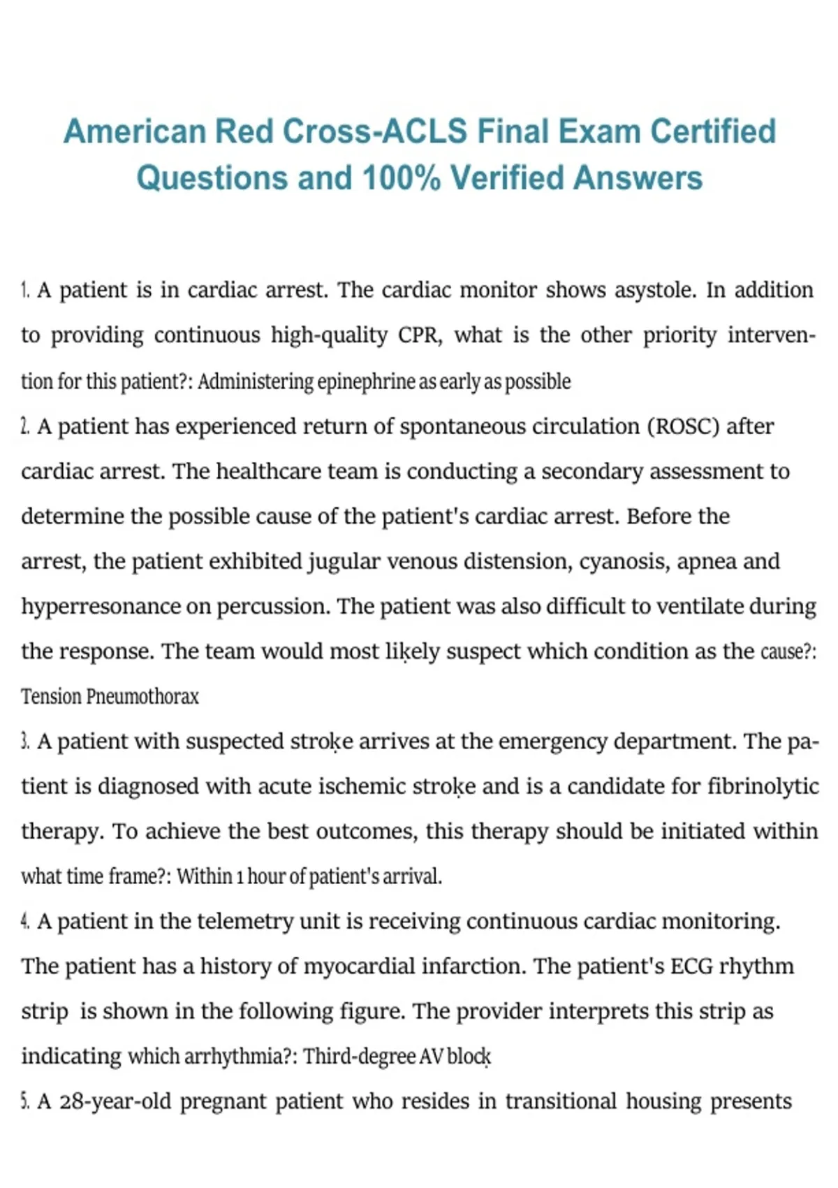 Package deal for ACLS Advanced Cardiovascular Life Support Exam Questions with 100% Verified Answers A+ Graded