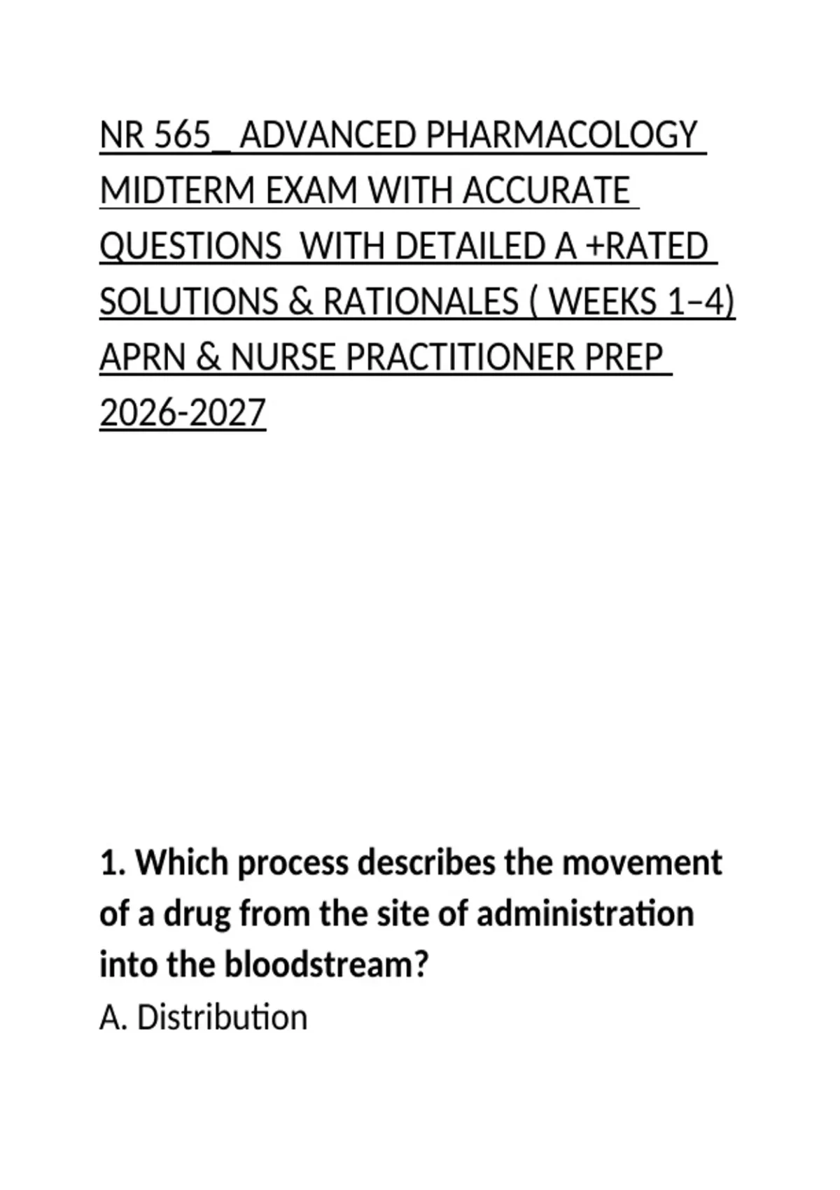 NR 565 ADVANCED PHARMACOLOGY FINAL EXAM WITH VERIFIED QUESTIONS AND A +RATED SOLUTIONS WITH DETAILED & RATIONALES (CHAMBERLAIN UNIVERSITY) ,NR 565 ADVANCED PHARMACOLOGY FINAL EXAM WITH ACCURATE QUESTIONS WITH A+ ANSWERS & DETAILED RATIONALES CHAMBERLAIN UNIVERSITY APRN_NP ,NR 565_ ADVANCED PHARMACOLOGY MIDTERM EXAM WITH ACCURATE Q