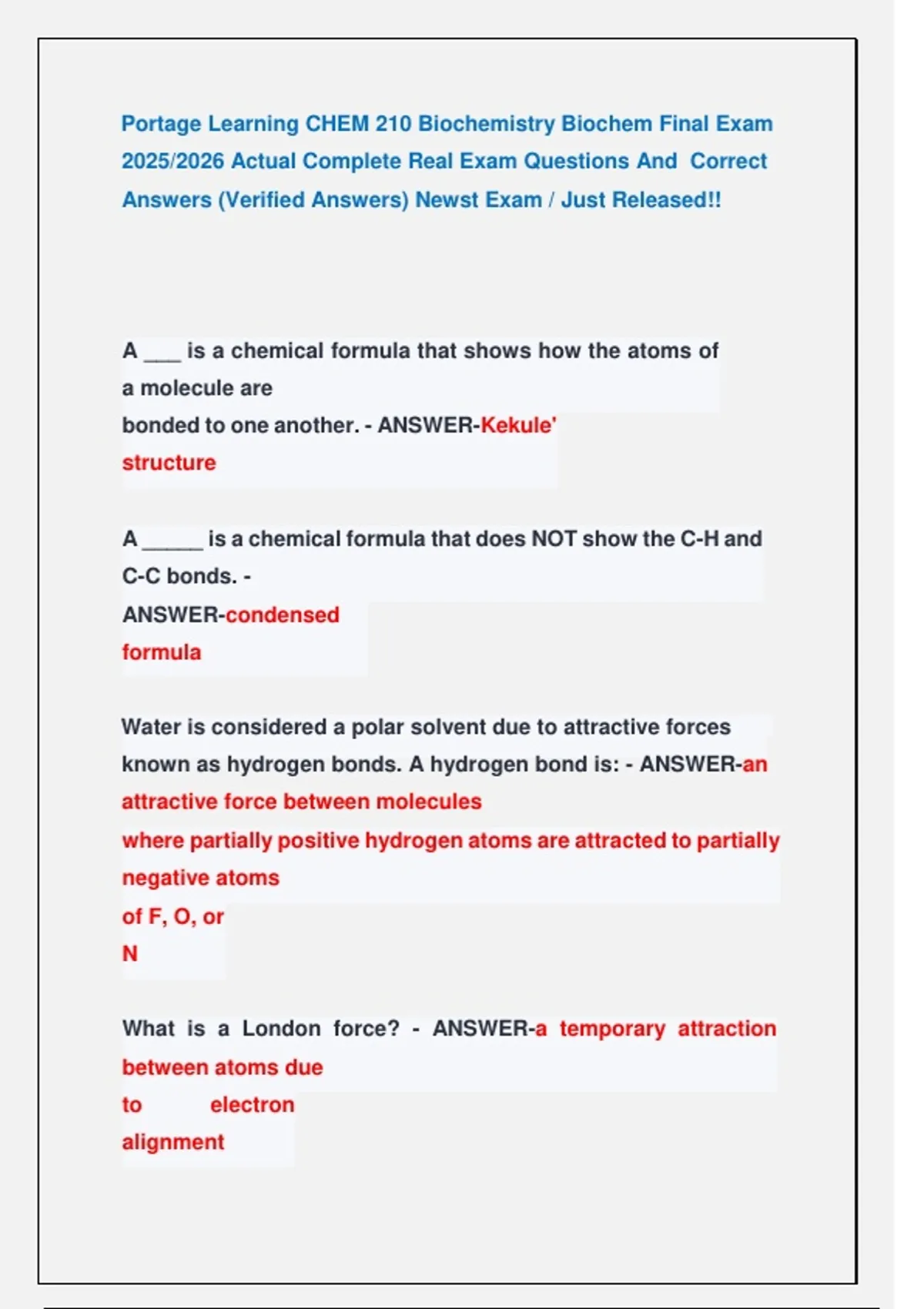 CHEM 210 Biochemistry Exams Portage Learning || Most Recent Exams 2026