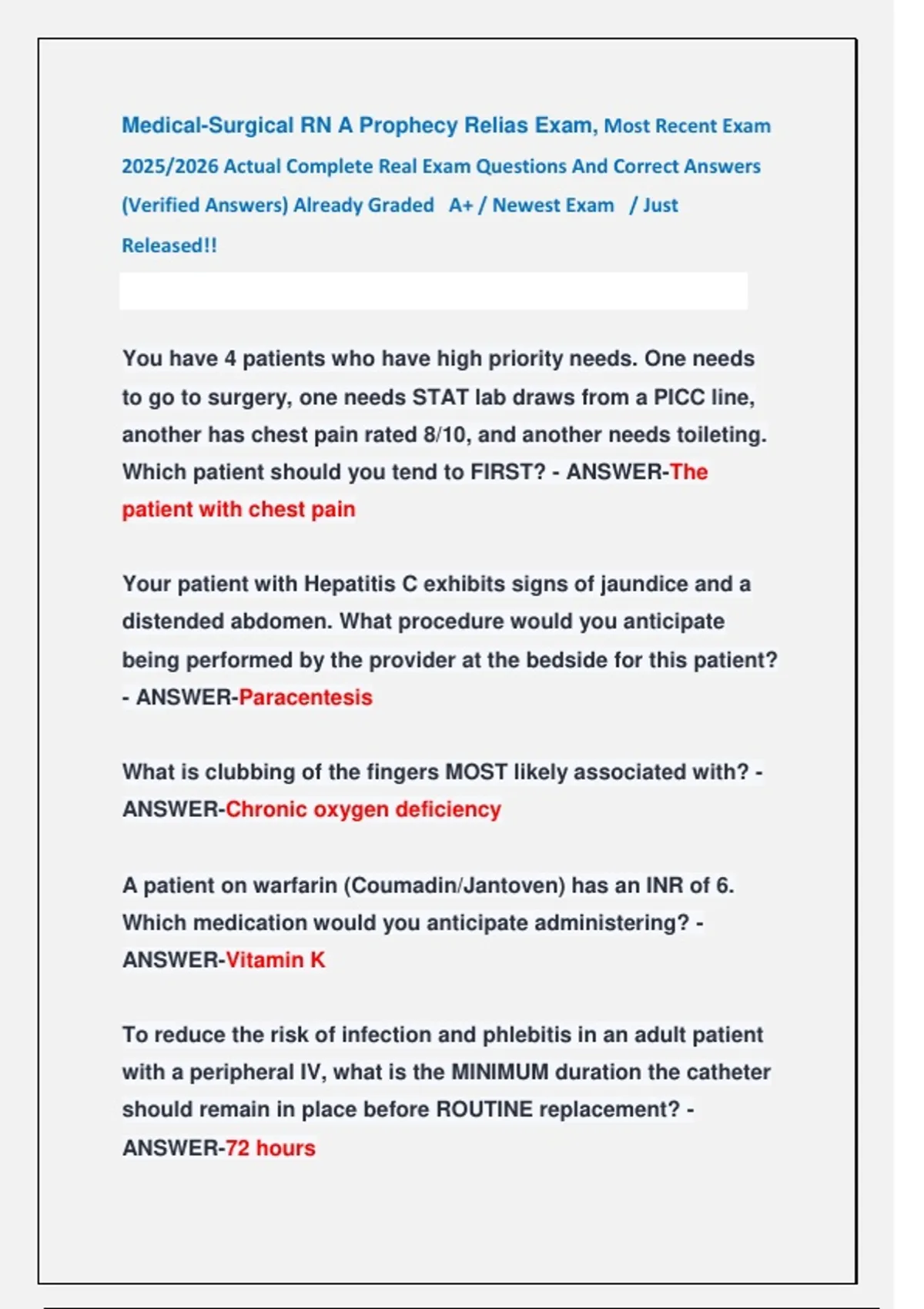 Medical-Surgical RN A Prophecy Relias Exams || Most Recent Exams 2026