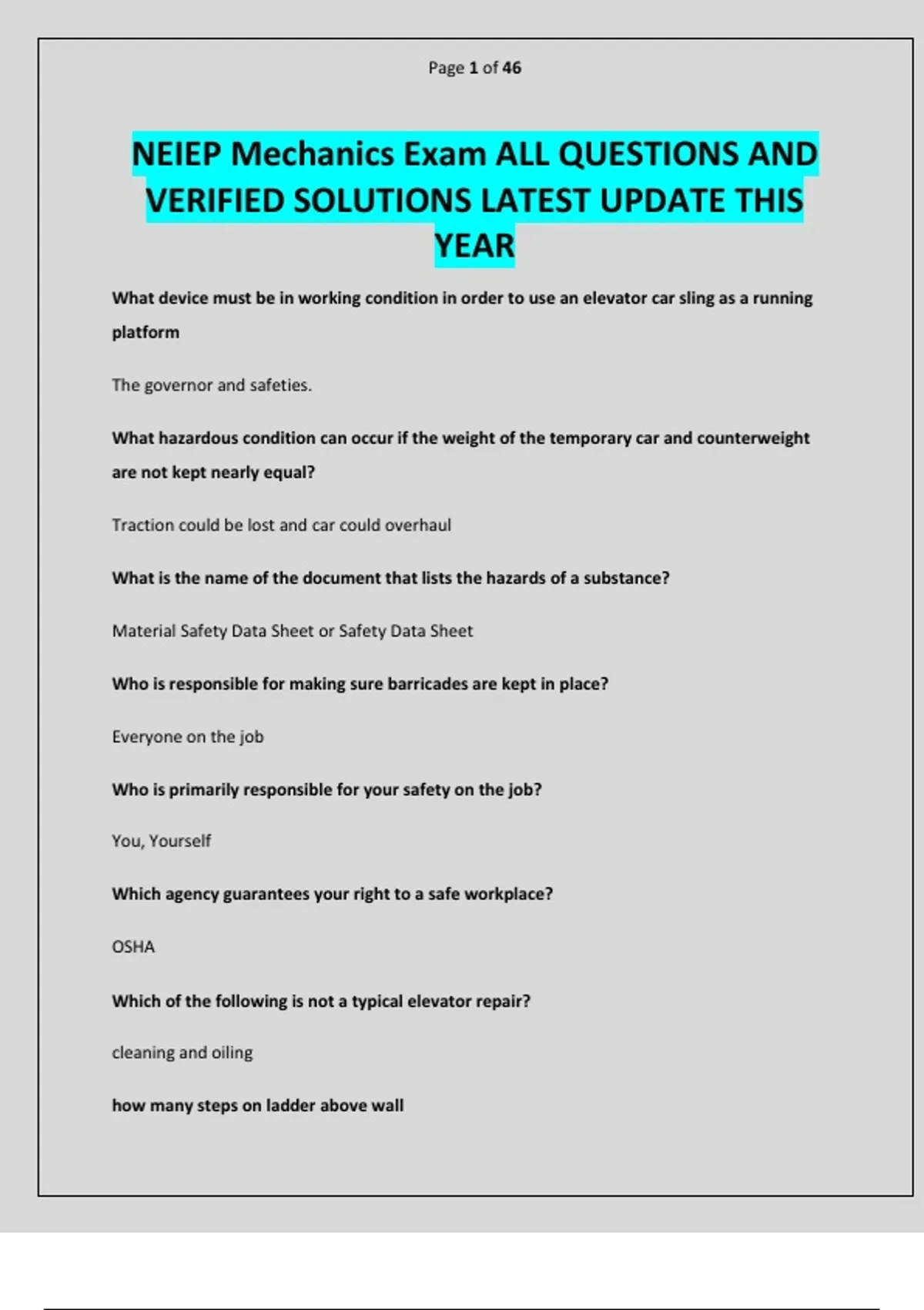 NEIEP Mechanics Exam ALL QUESTIONS AND VERIFIED SOLUTIONS LATEST UPDATE THIS YEAR