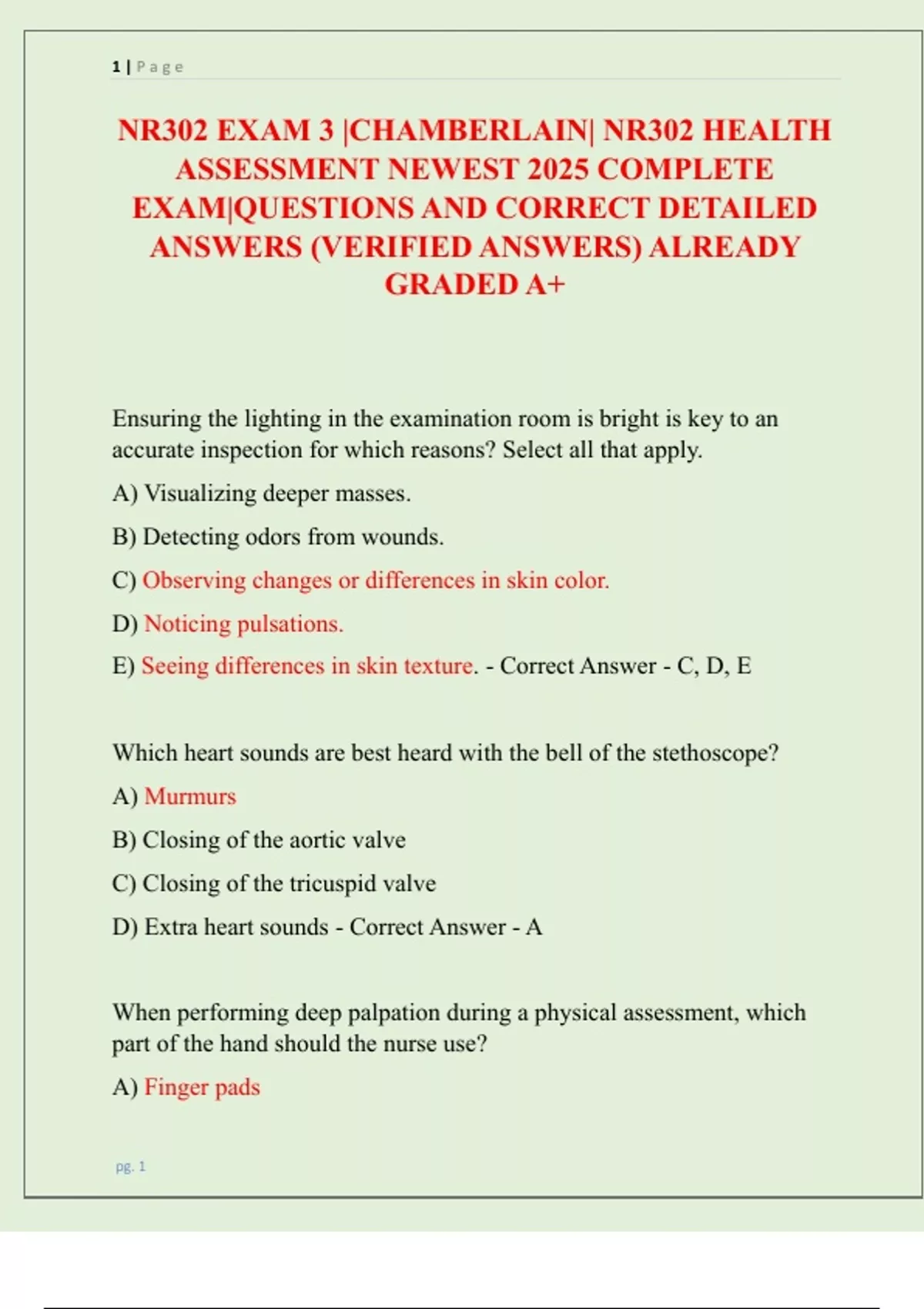 NR 302 EXAMS 1, 2, 3 & FINAL EXAM (CHAMBERLAIN) NEWEST 2026 PACKAGE DEAL| NR302 HEALTH ASSESSMENT EXAMS REVIEW WITH COMPLETE ACTUAL EXAM QUESTIONS AND CORRECT VERIFIED ANSWERS/ ALREADY GRADED A+