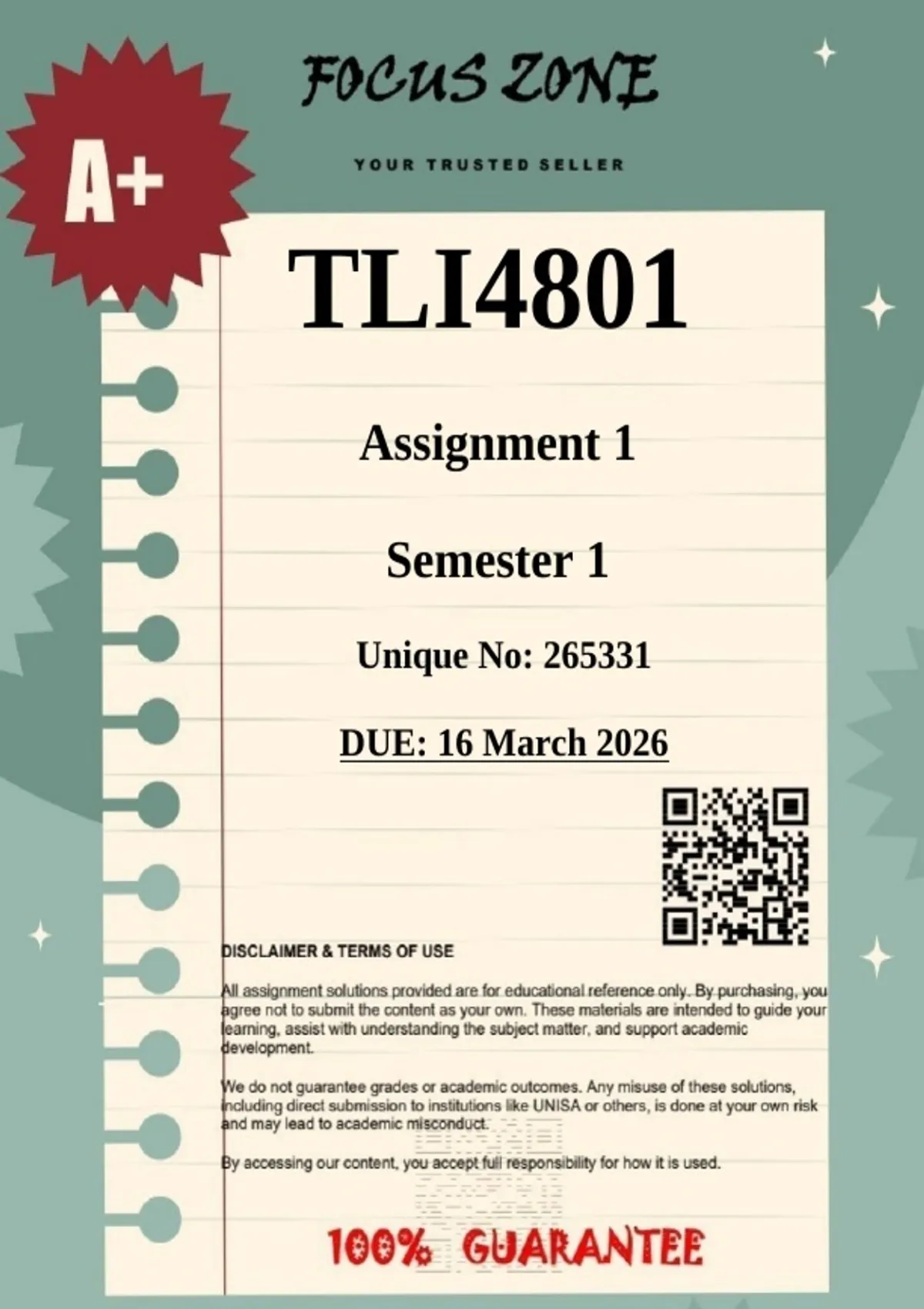 TLI4801 Assignment 1 Semester 1 (265331) |COMPREHENSIVE ANSWERS|- DUE 16 March 2026