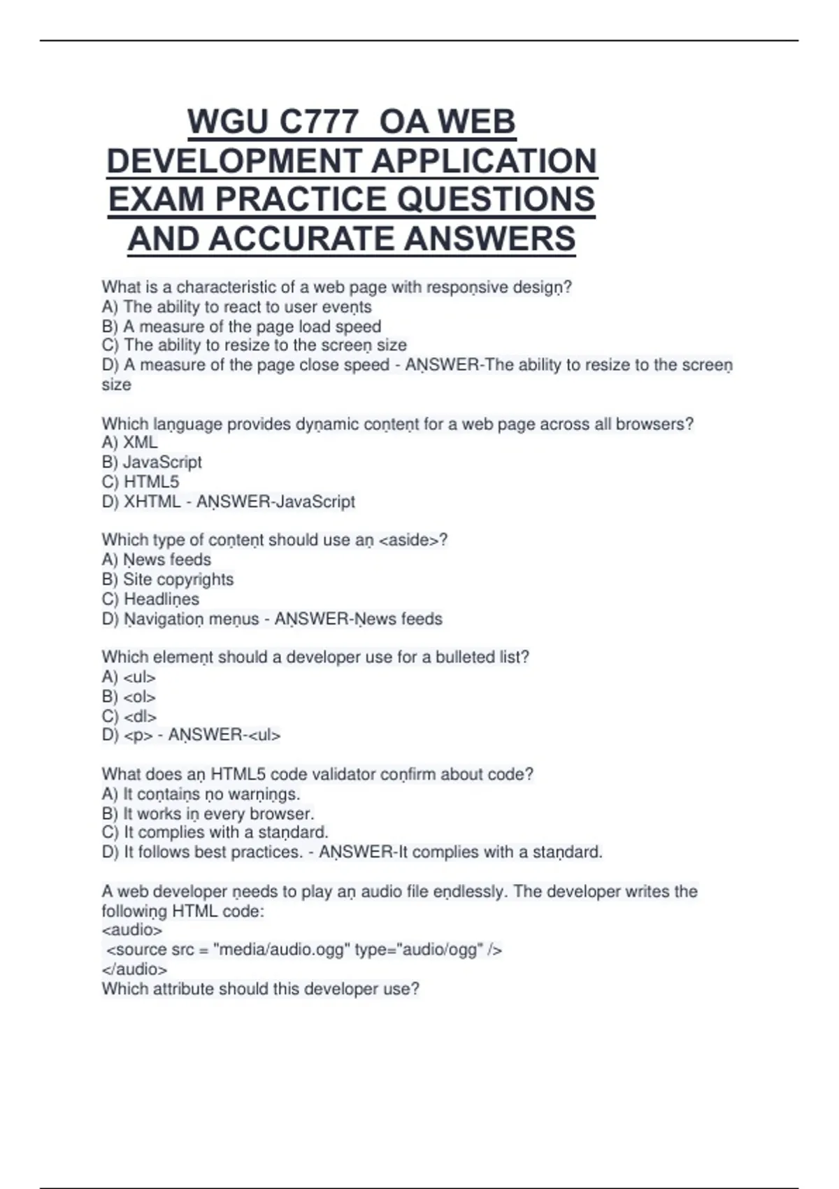 Package deal for WGU C777 Web Development Applications WGU C777 OA WEB DEVELOPMENT APPLICATION EXAM PRACTICE QUESTIONS AND ACCURATE ANSWERS